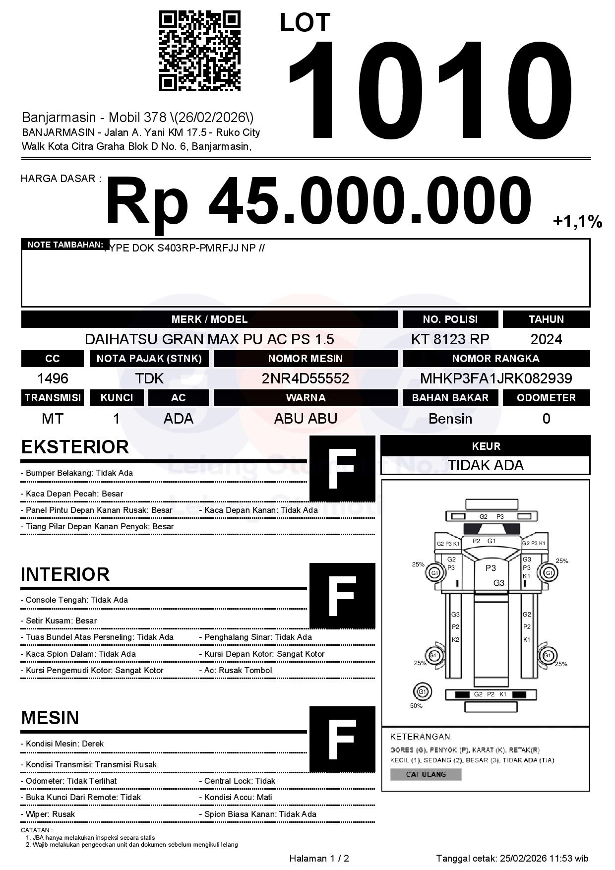 Tanggal Lelang: 26/02/2026 | 14:00 WITA