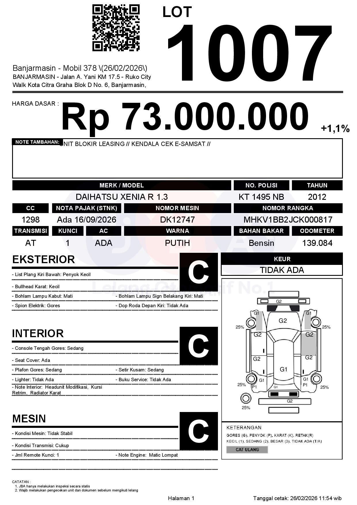 Tanggal Lelang: 26/02/2026 | 14:00 WITA
