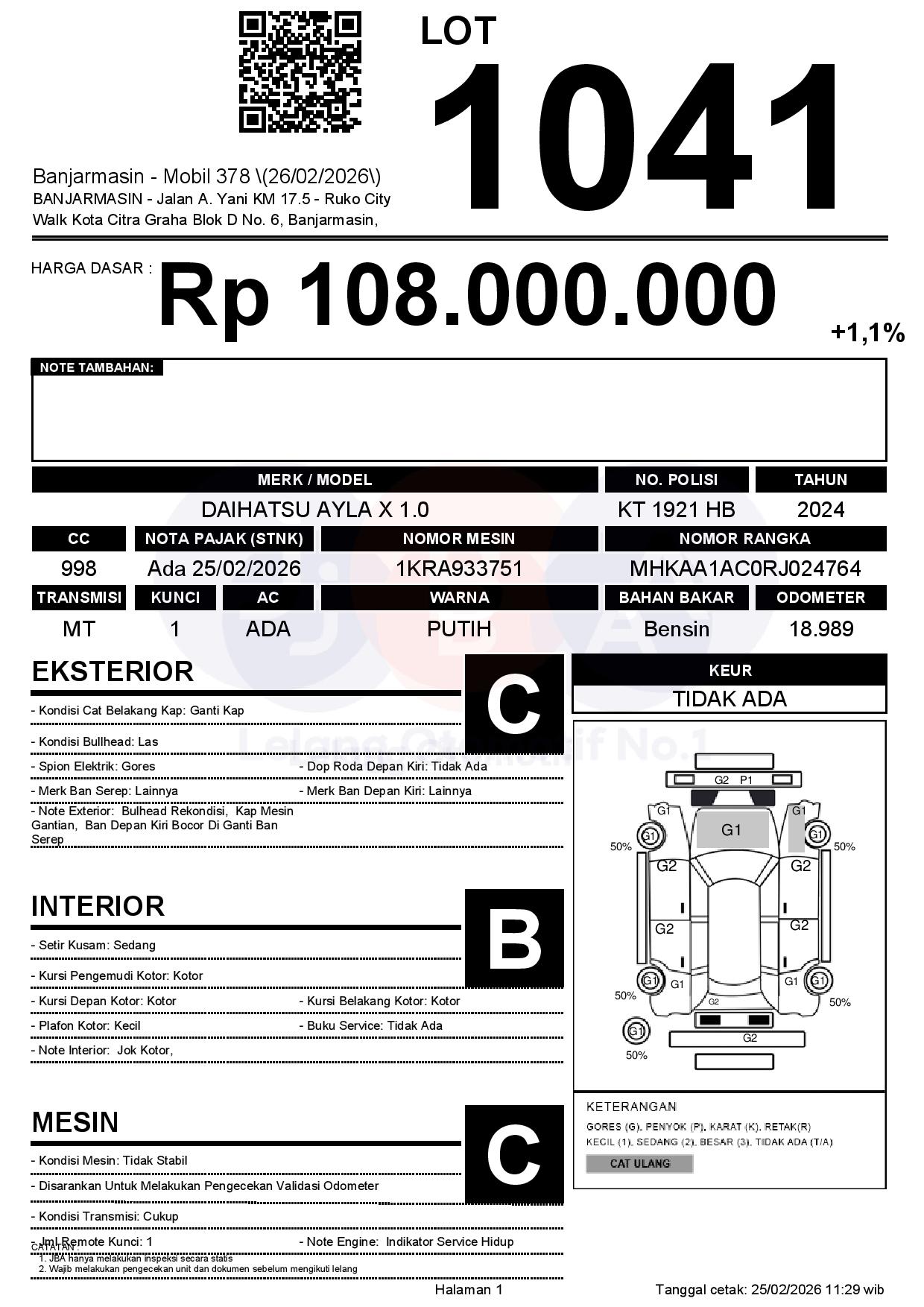 Tanggal Lelang: 26/02/2026 | 14:00 WITA