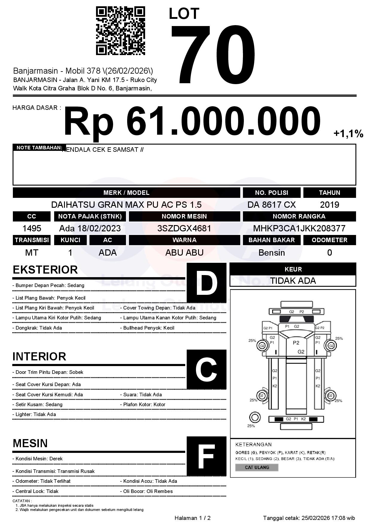 Tanggal Lelang: 26/02/2026 | 13:00 WITA