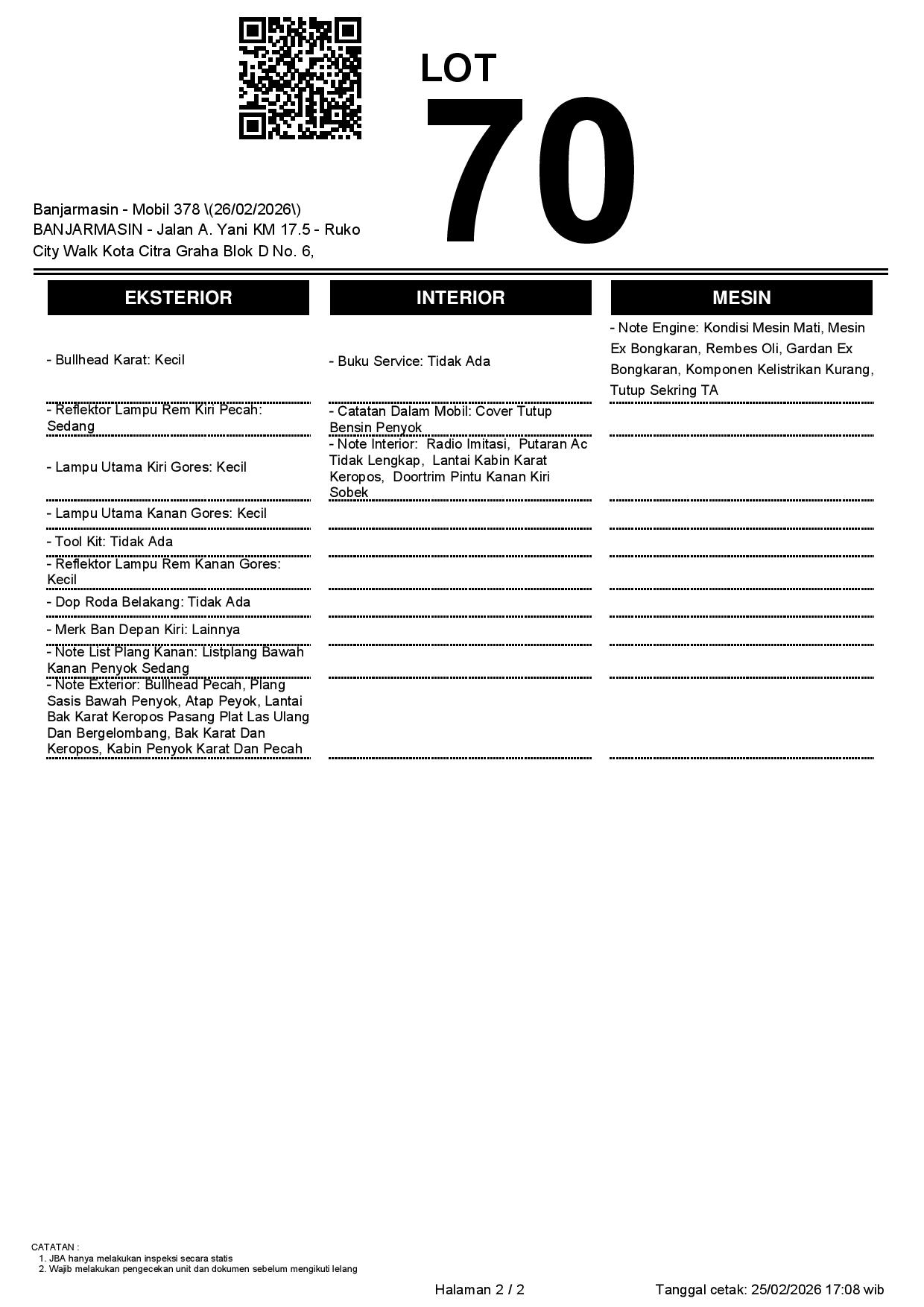 2. Peserta lelang wajib cek unit & dokumen