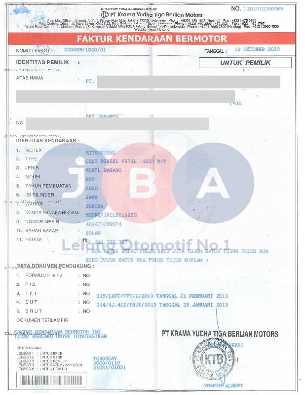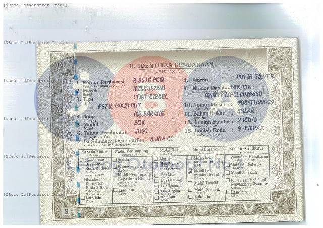 A.N PT // MODEL PADA STNK NOTICE BLIND/DEL.VAN // TERDAPAT SURAT KET RUBAH BENTUK DAN WARNA //