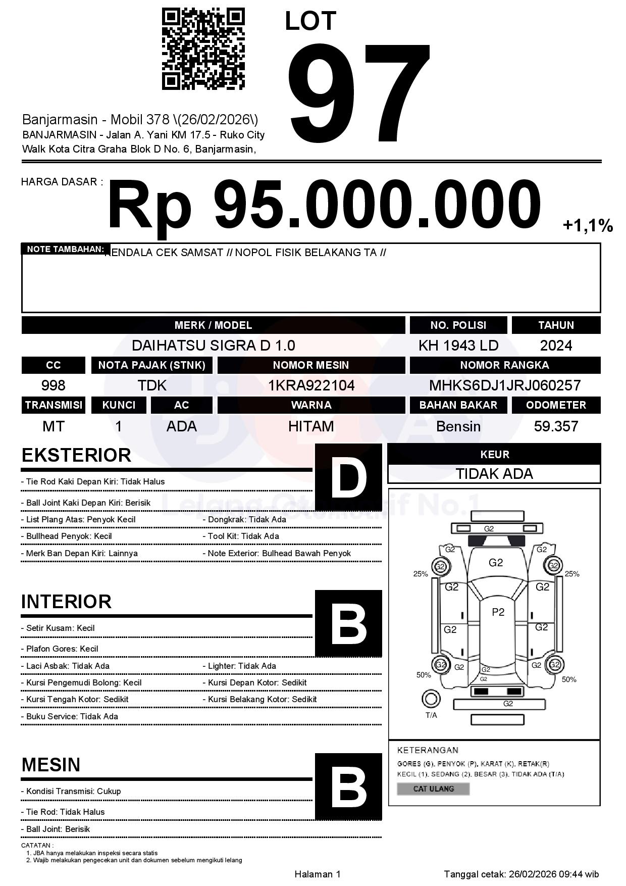 Tanggal Lelang: 26/02/2026 | 13:00 WITA