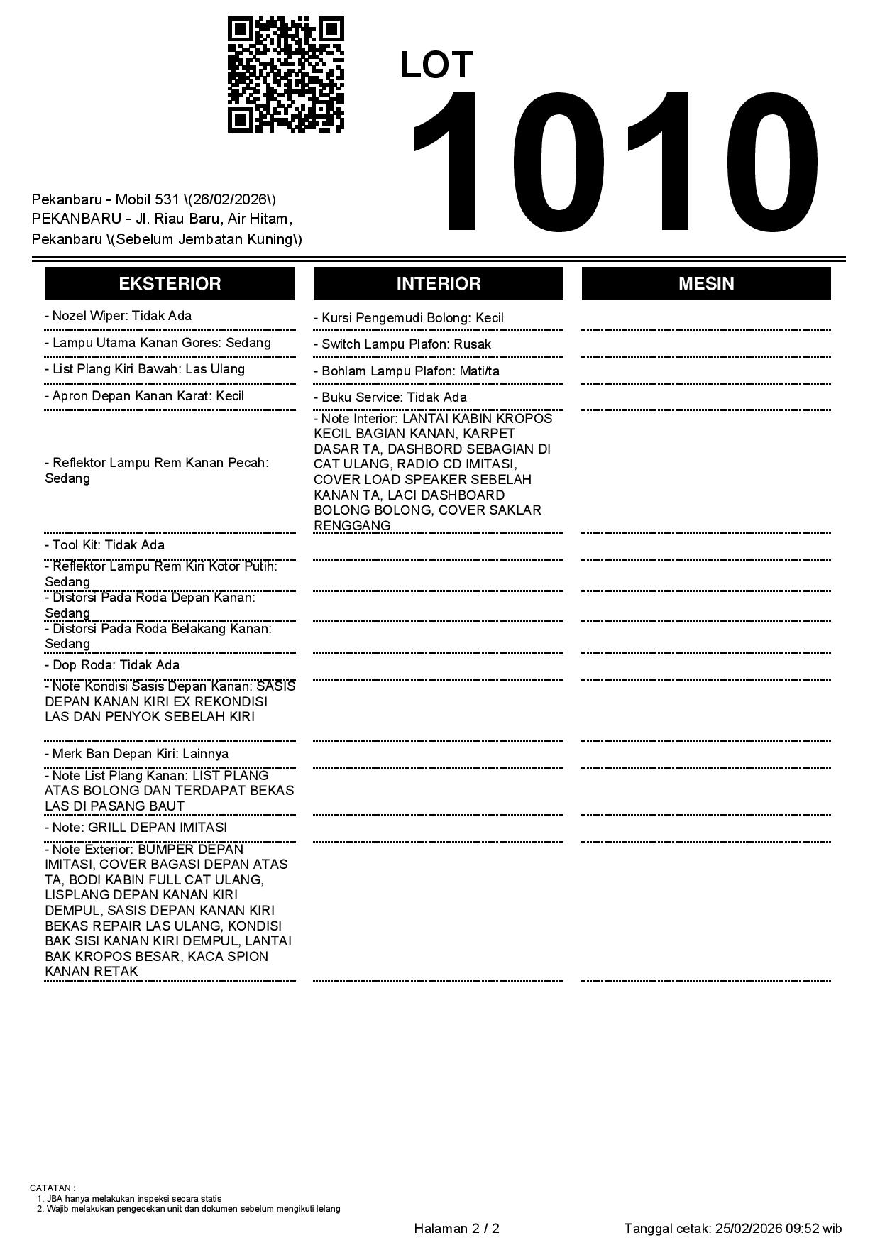 2. Peserta lelang wajib cek unit & dokumen