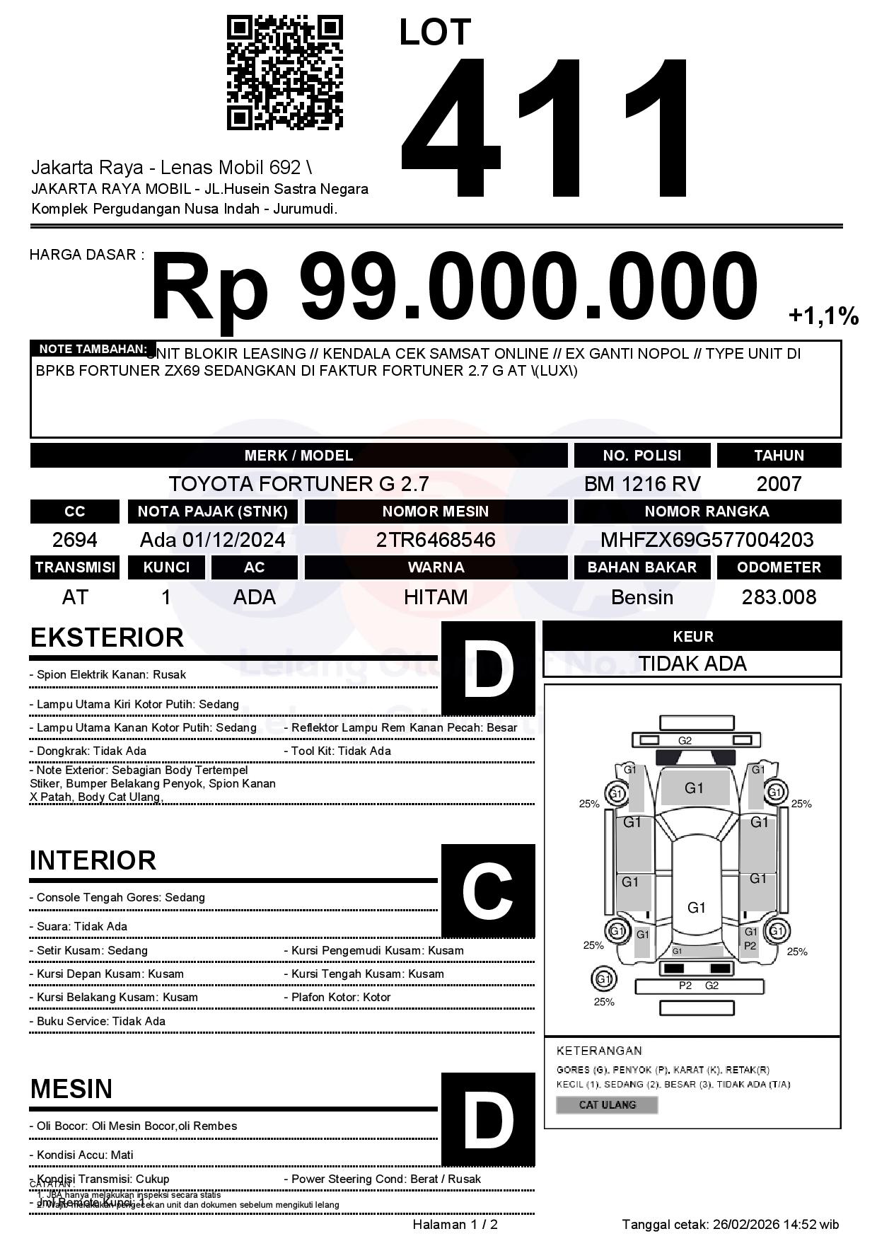 Tanggal Lelang: 26/02/2026 | 13:00 WIB