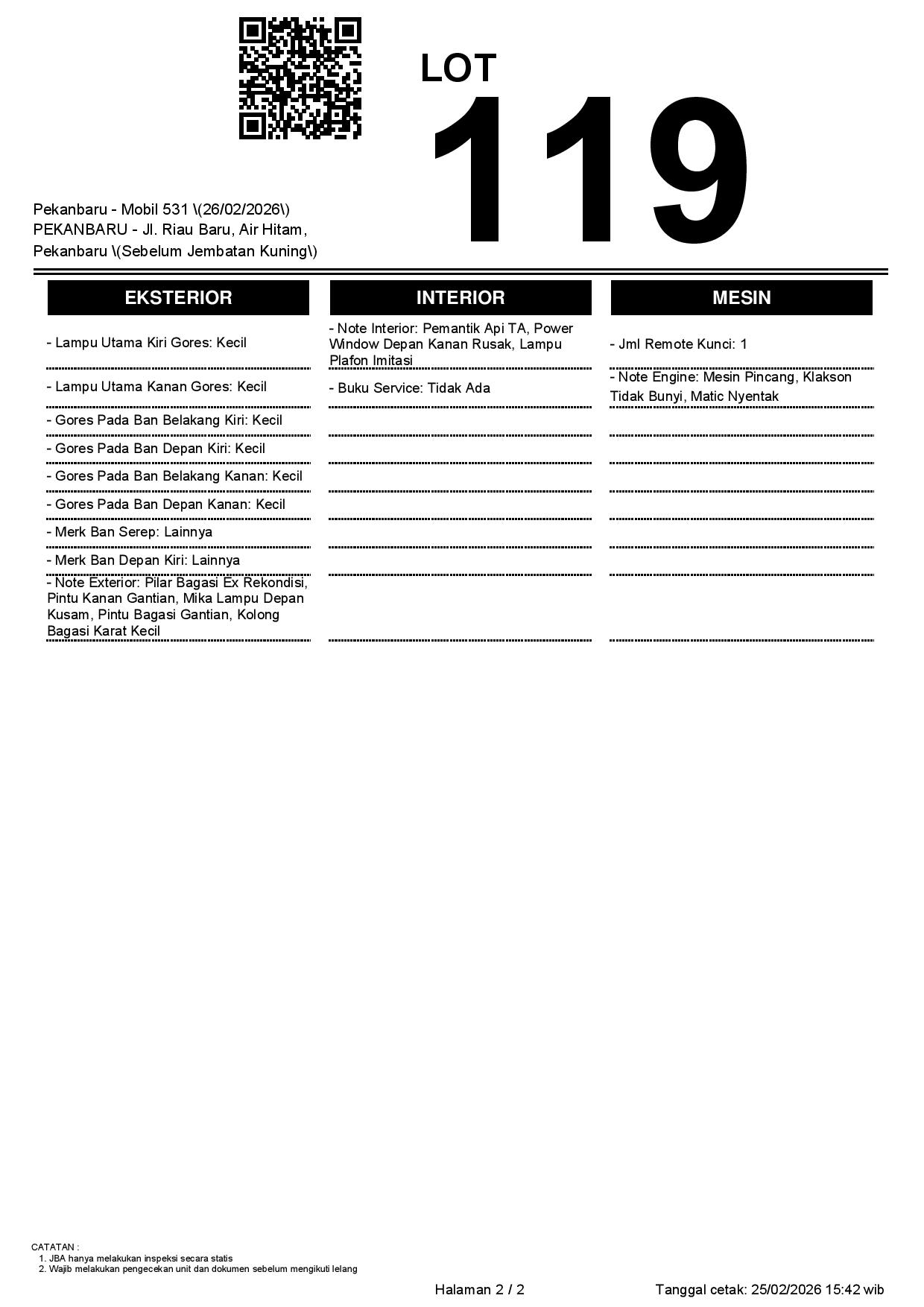 2. Peserta lelang wajib cek unit & dokumen