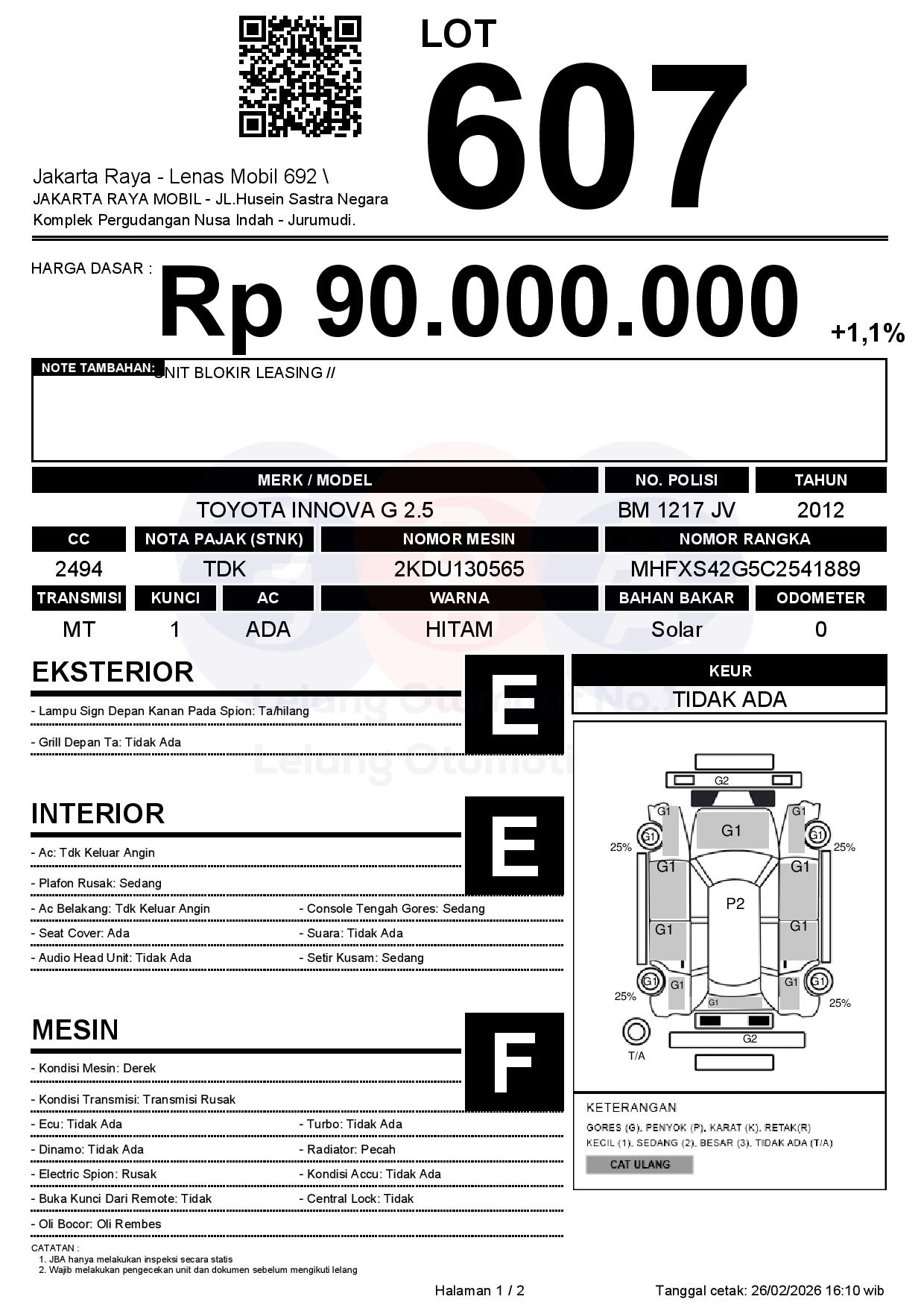 Tanggal Lelang: 26/02/2026 | 13:00 WIB