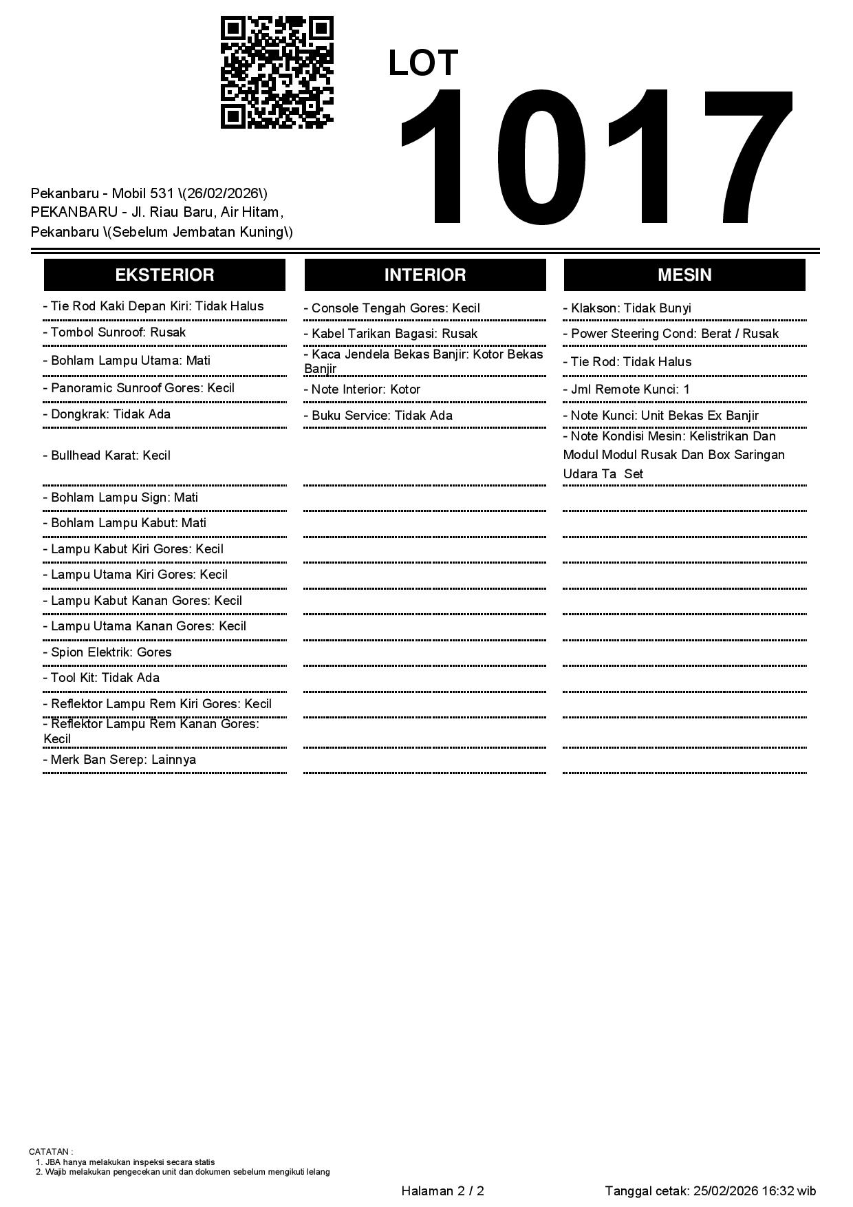 2. Peserta lelang wajib cek unit & dokumen