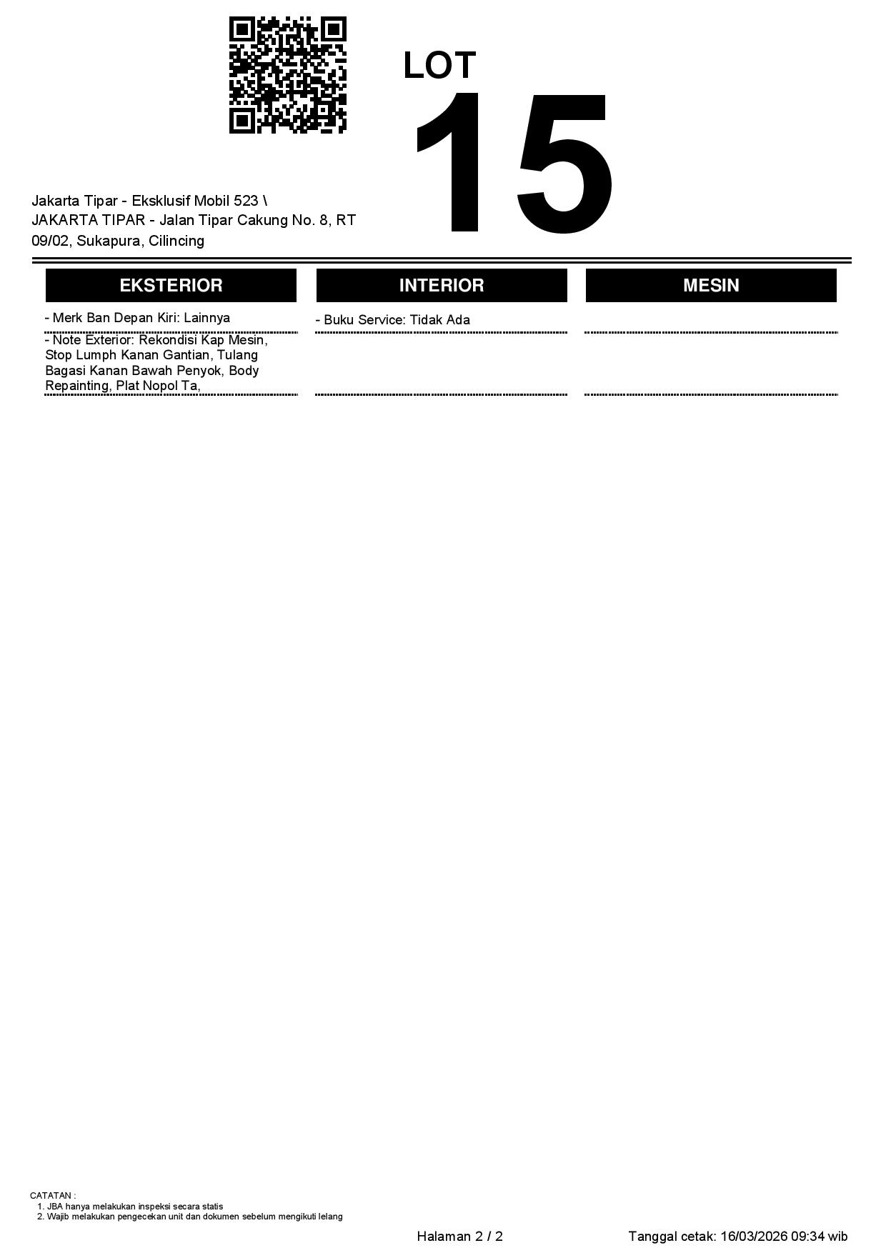 Tanggal Lelang: 16/03/2026 | 13:00 WIB