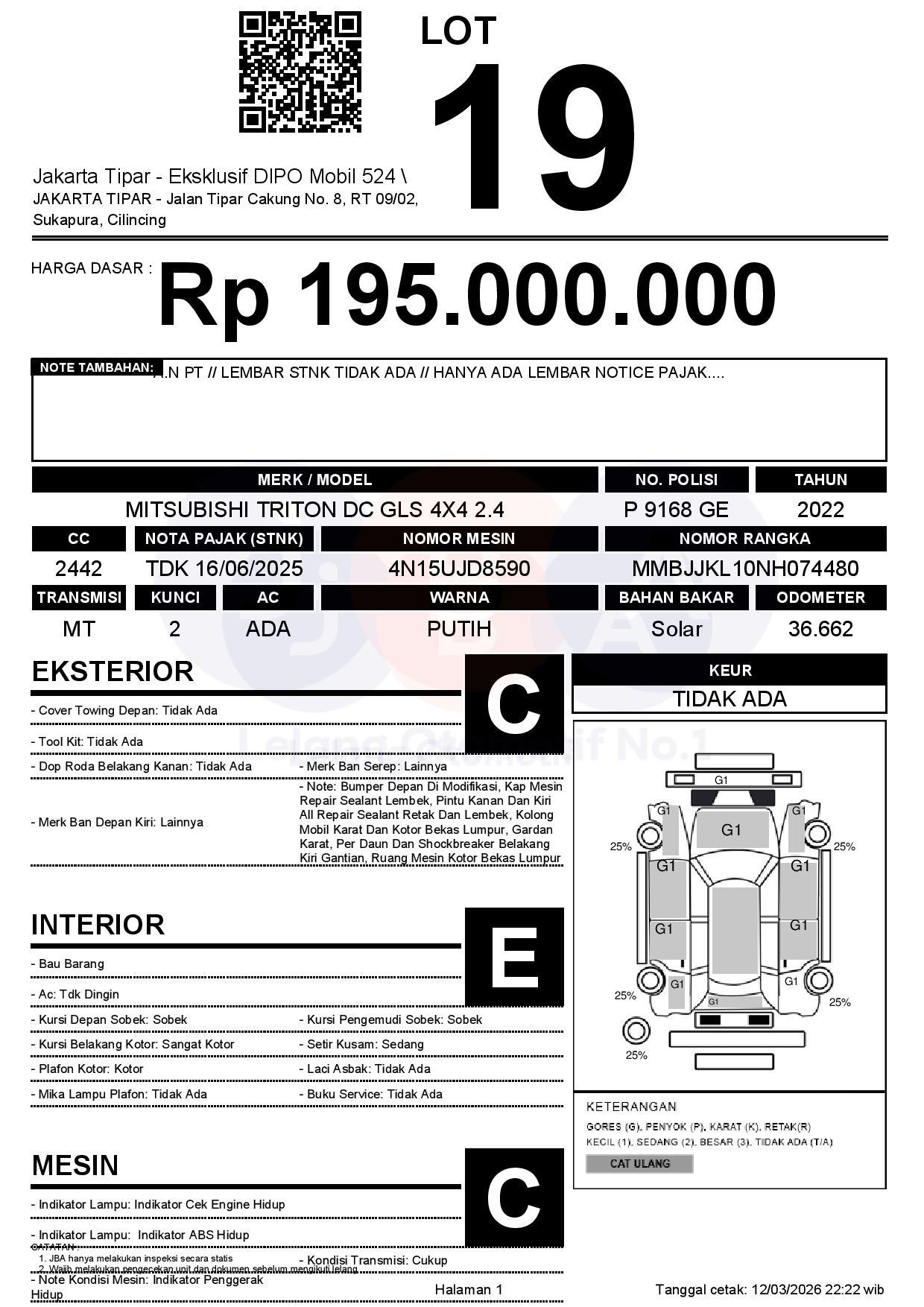 Tanggal Lelang: 13/03/2026 | 13.5:00 WIB