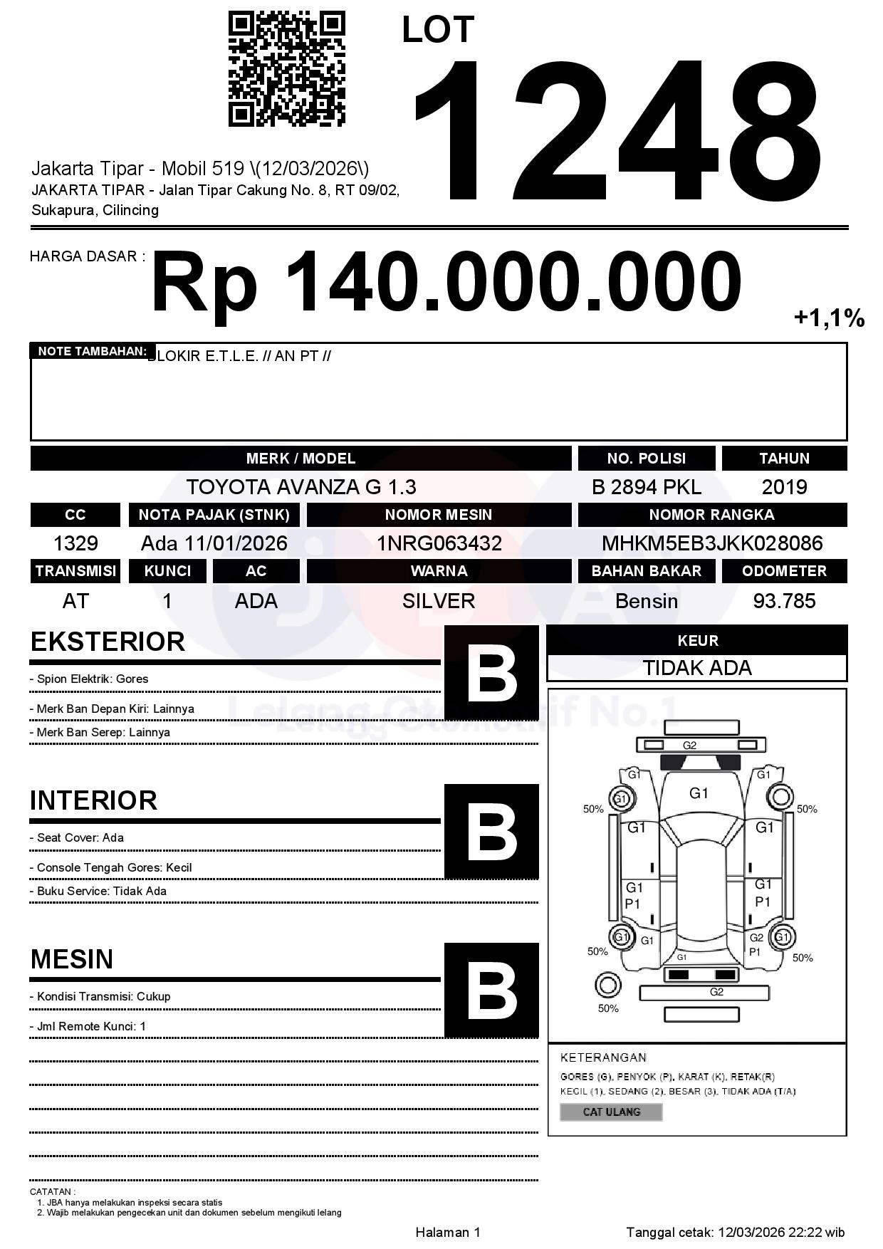 Tanggal Lelang: 13/03/2026 | 13.5:00 WIB