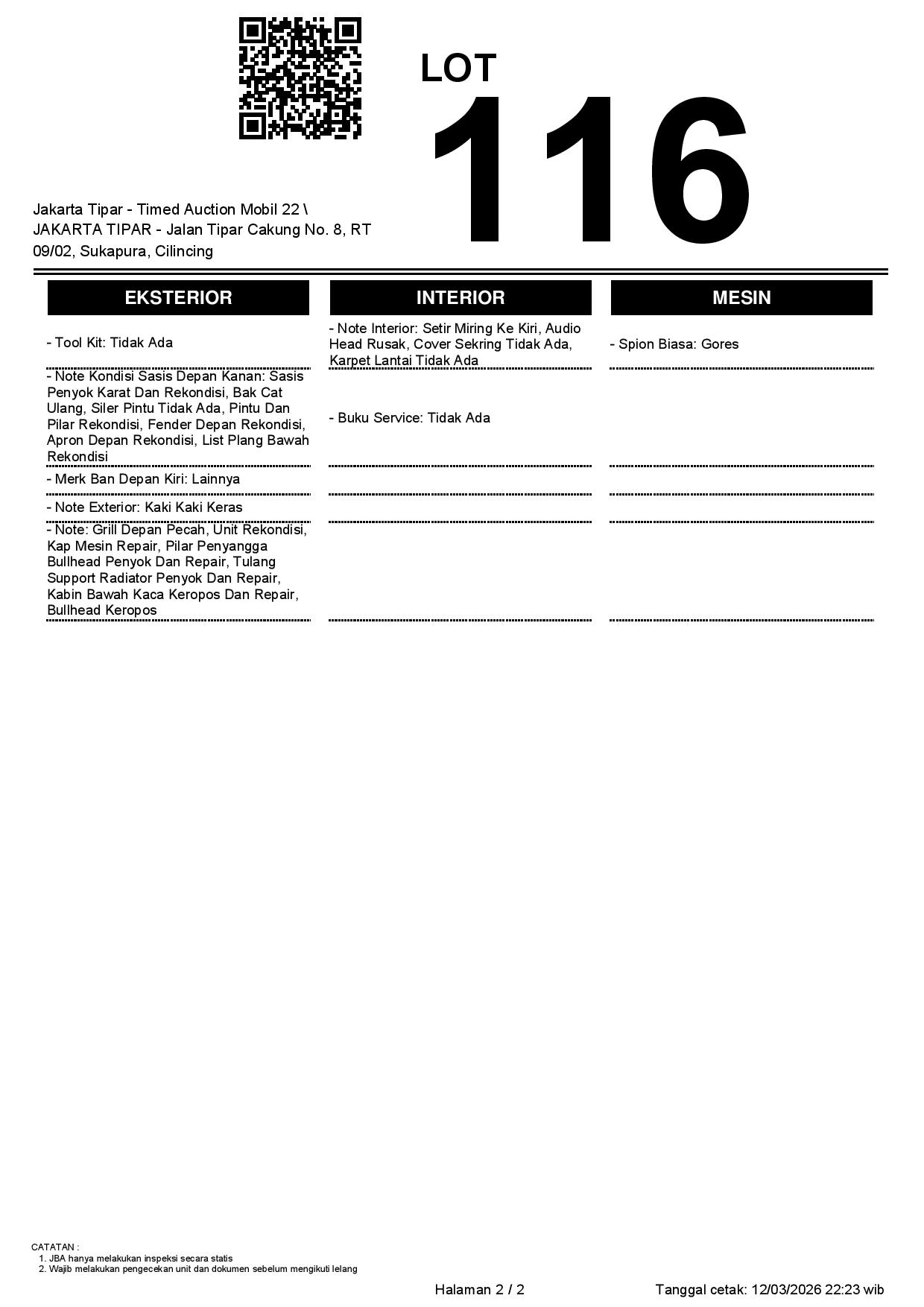 1. Peserta lelang wajib cek unit & dokumen