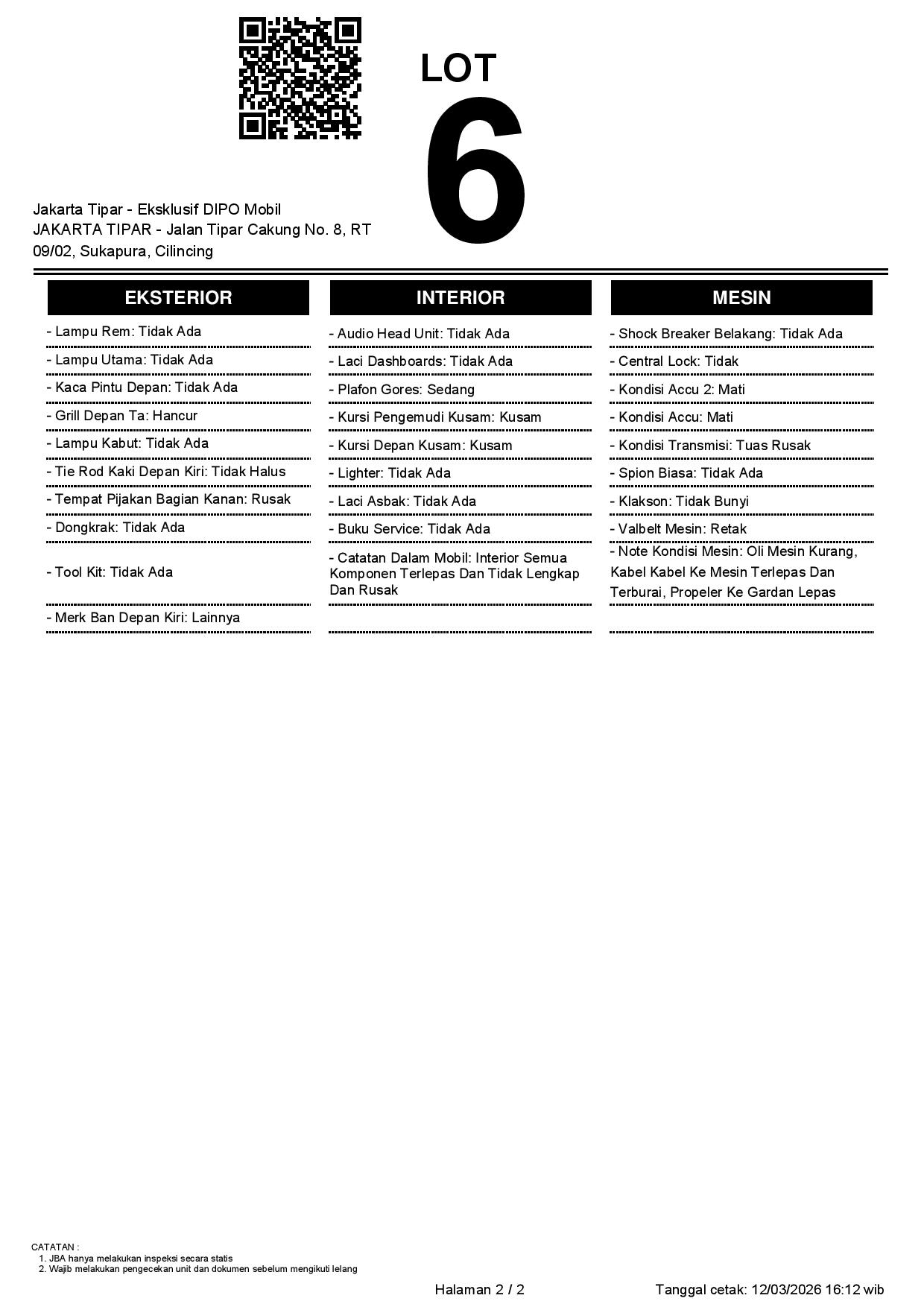 2. Peserta lelang wajib cek unit & dokumen
