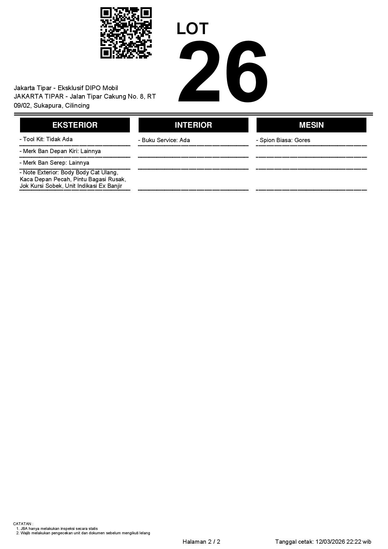 1. Peserta lelang wajib cek unit & dokumen