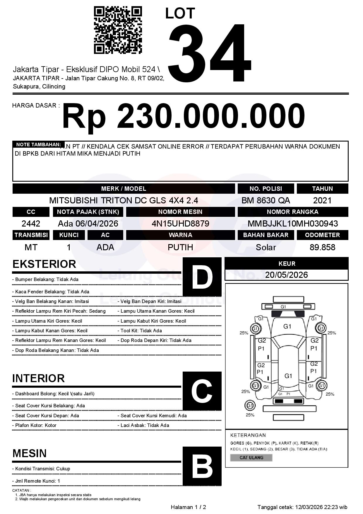 Tanggal Lelang: 13/03/2026 | 13.5:00 WIB
