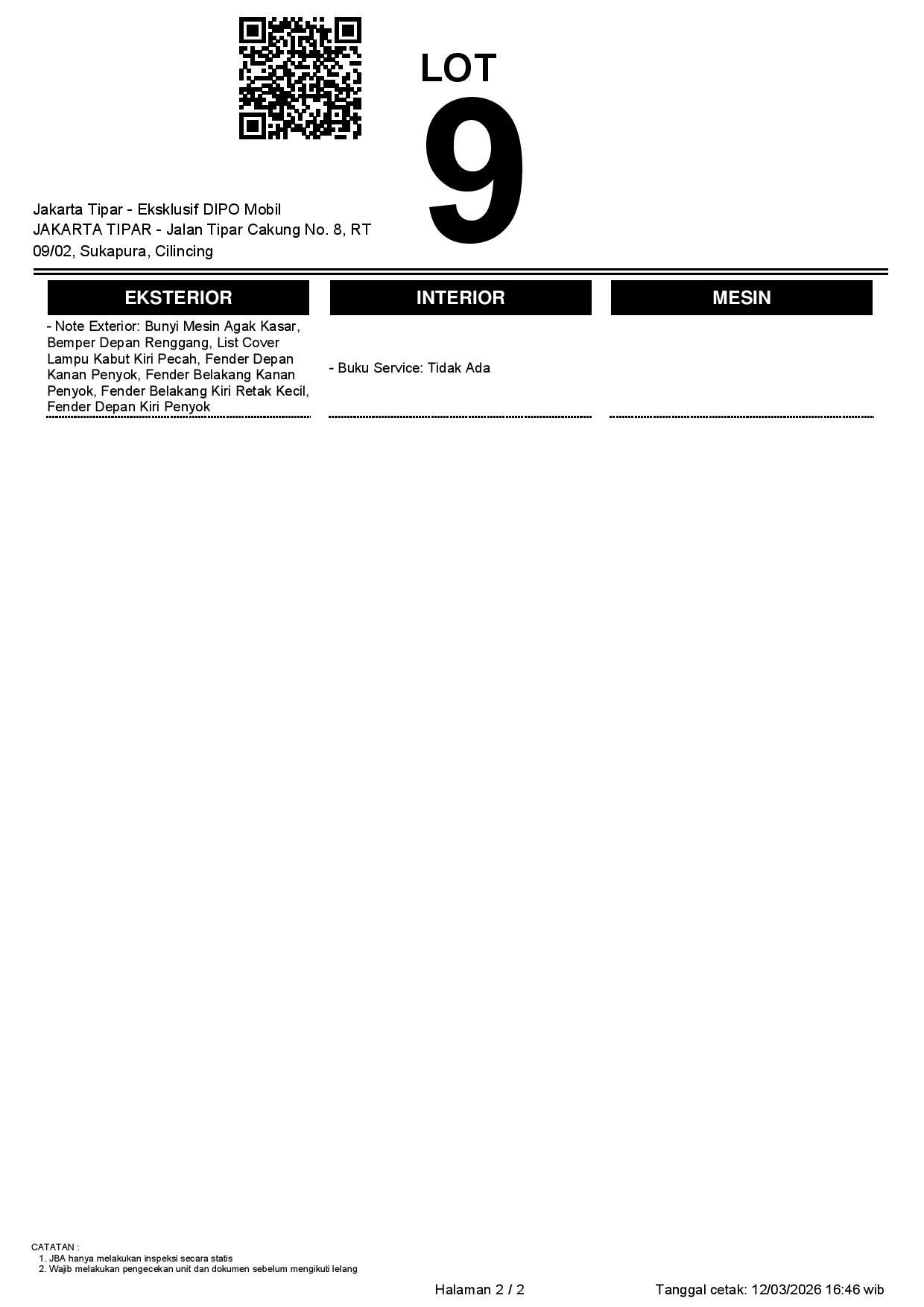 2. Peserta lelang wajib cek unit & dokumen