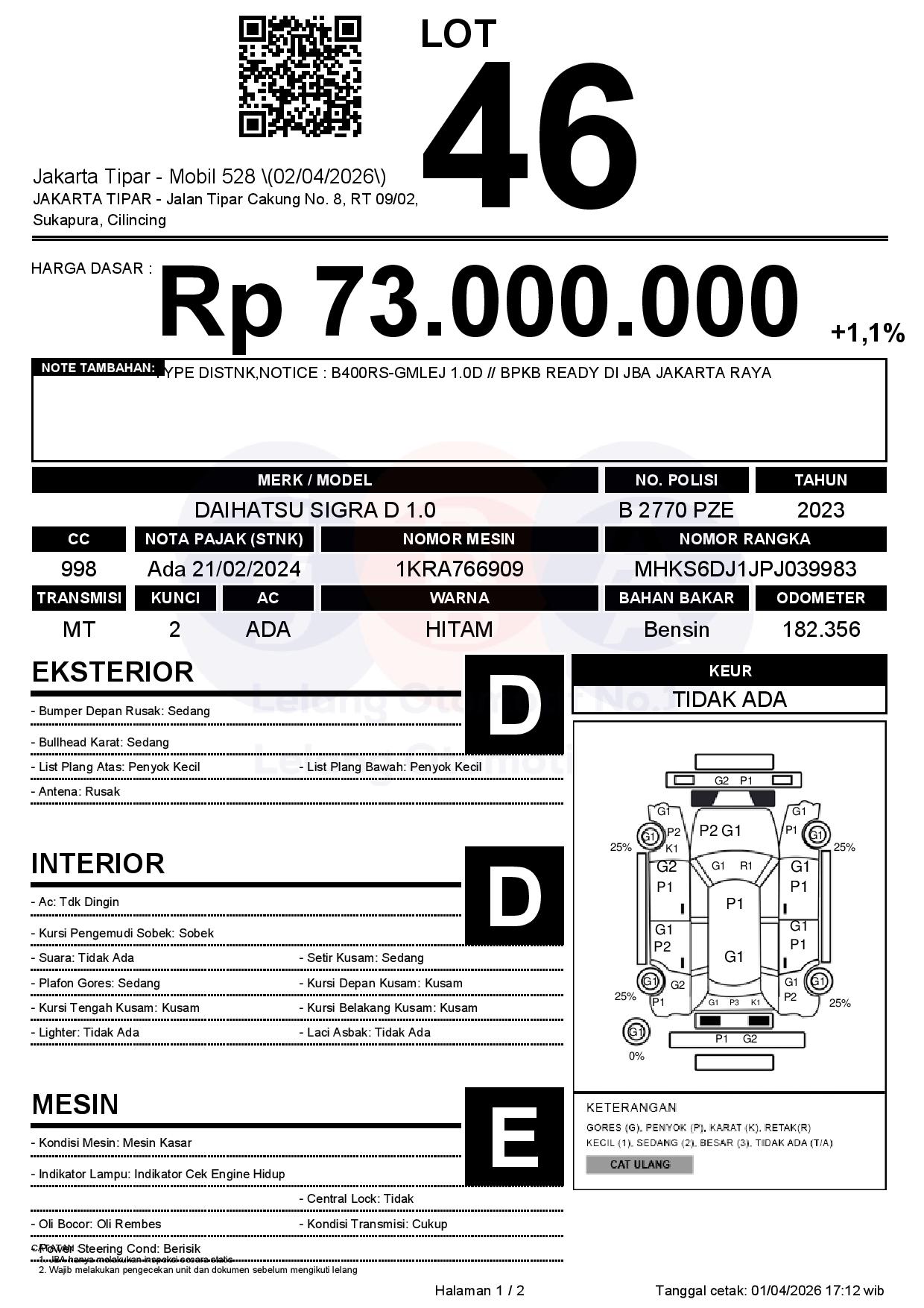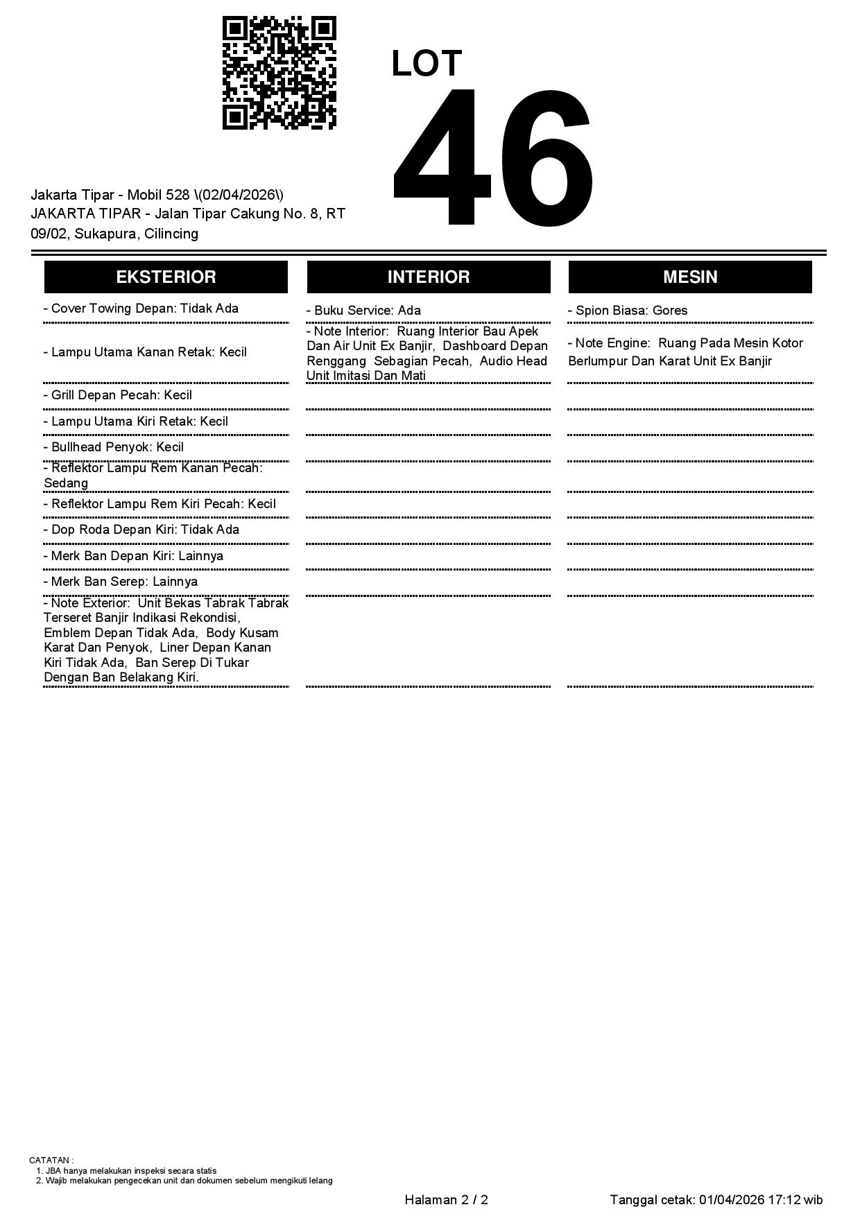 Tanggal Lelang: 02/04/2026 | 13:00 WIB