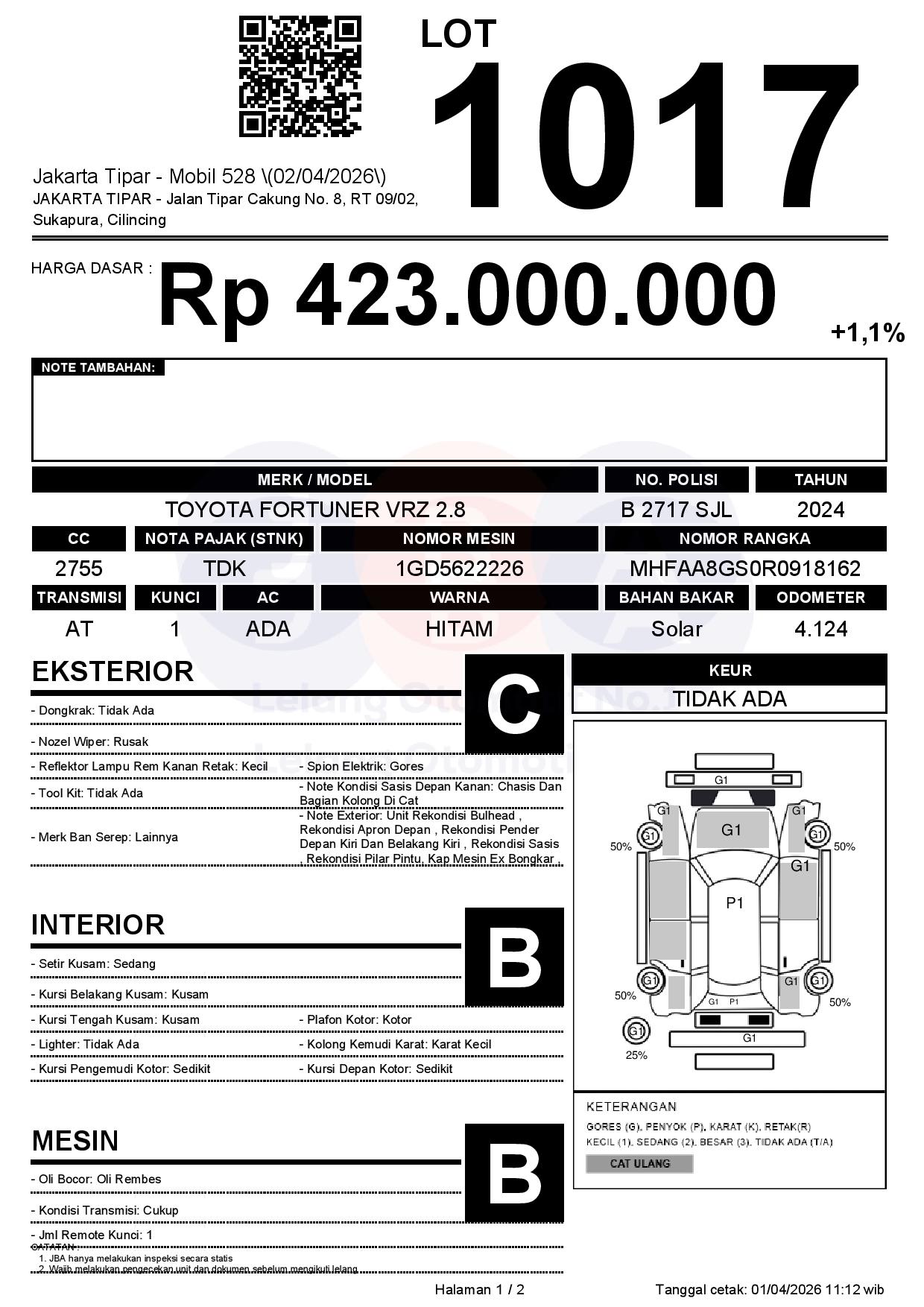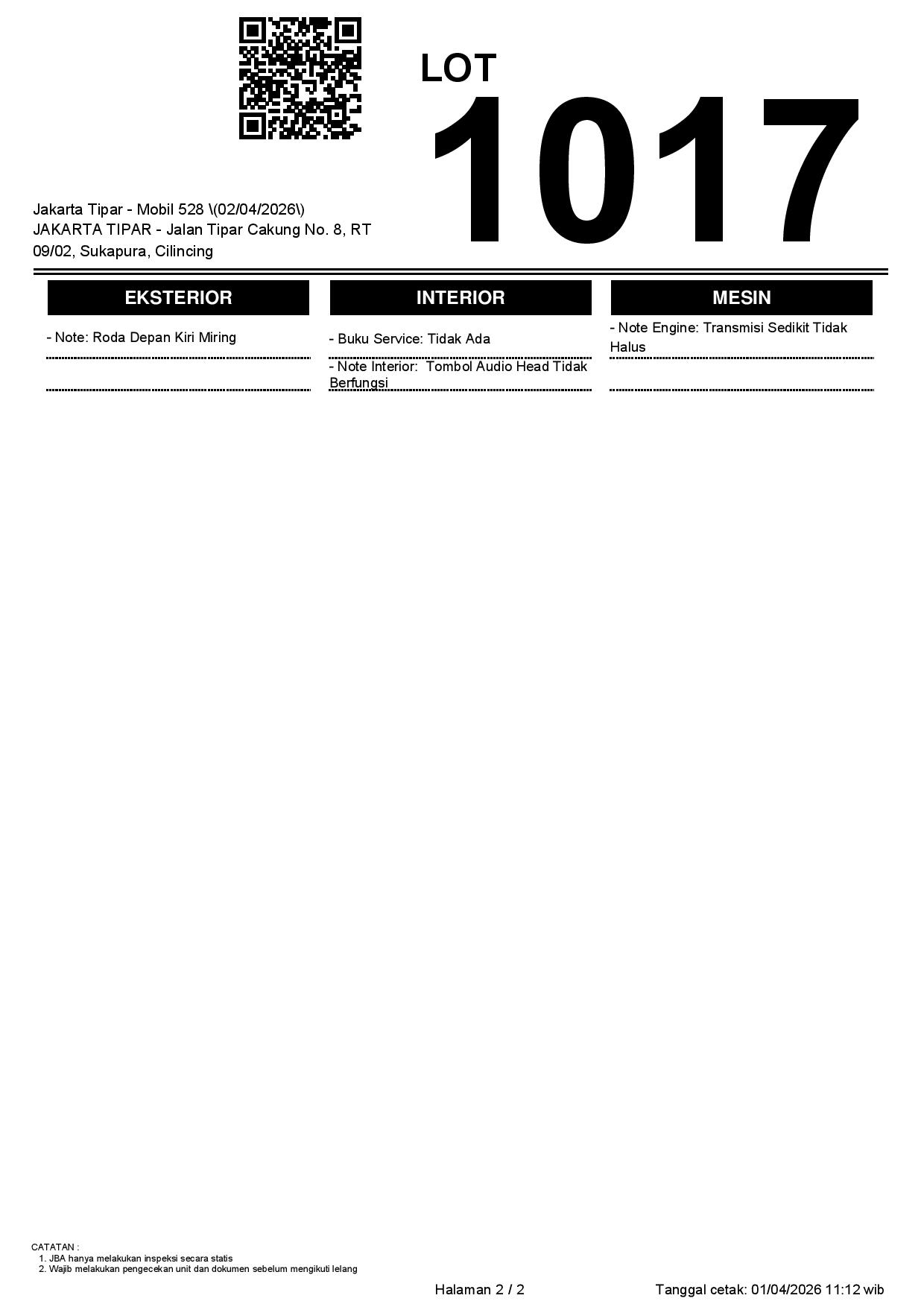 Tanggal Lelang: 02/04/2026 | 14:00 WIB