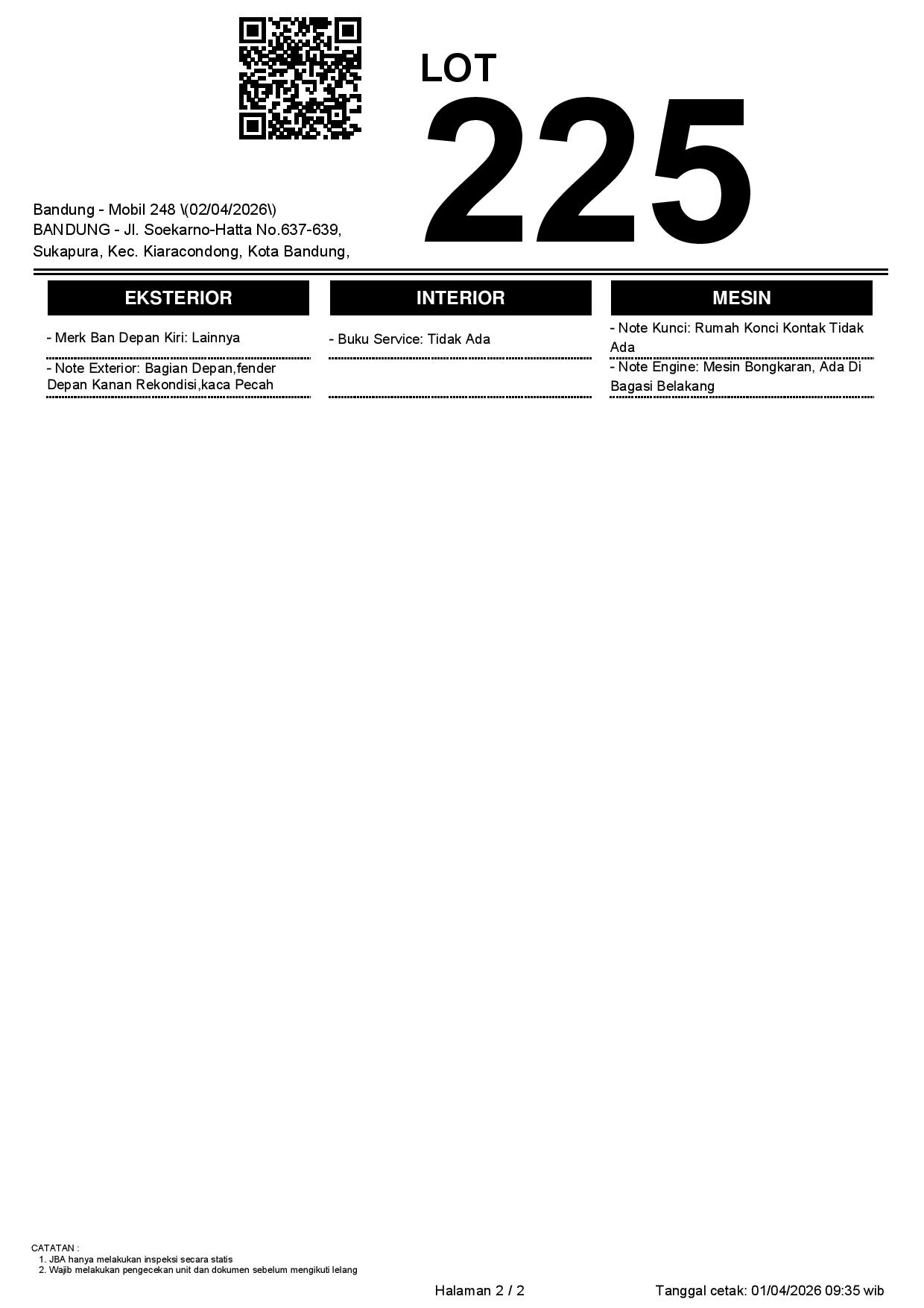 2. Peserta lelang wajib cek unit & dokumen