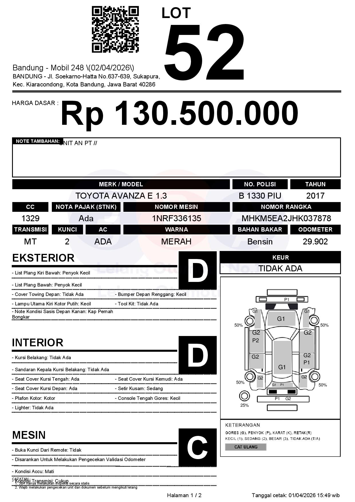 Tanggal Lelang: 02/04/2026 | 13:00 WIB