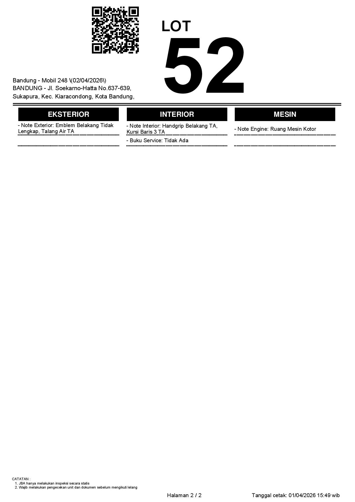 1. Peserta lelang wajib cek unit & dokumen