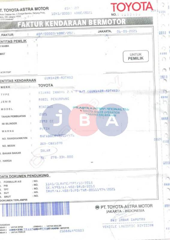 A.N PT // TERDAPAT BEKAS TIPEX DAN REVISI PADA LEMBAR BPKB , STNK DAN NOTICE PAJAK DIKOLOM BAHAN BAKAR //