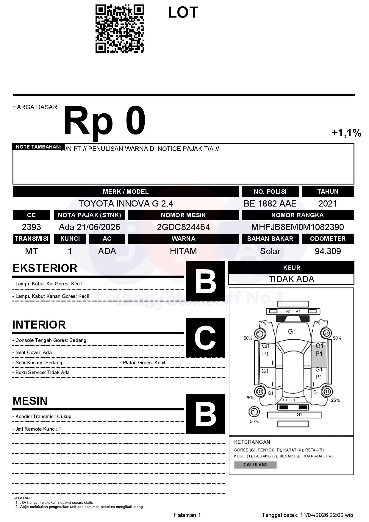 1. Ada biaya tambahan sebesar 1.1% dari harga terbentuk.