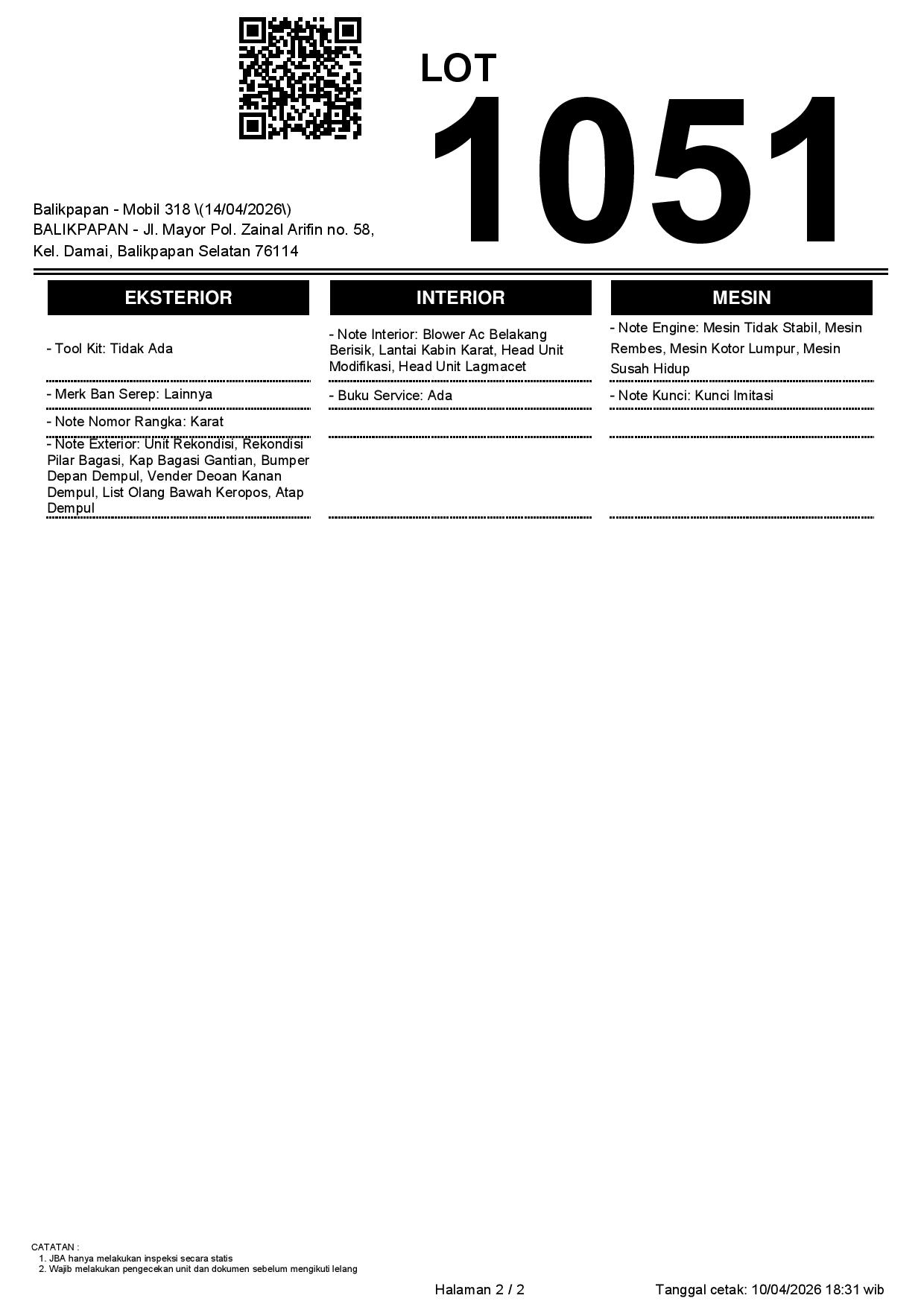 2. Peserta lelang wajib cek unit & dokumen