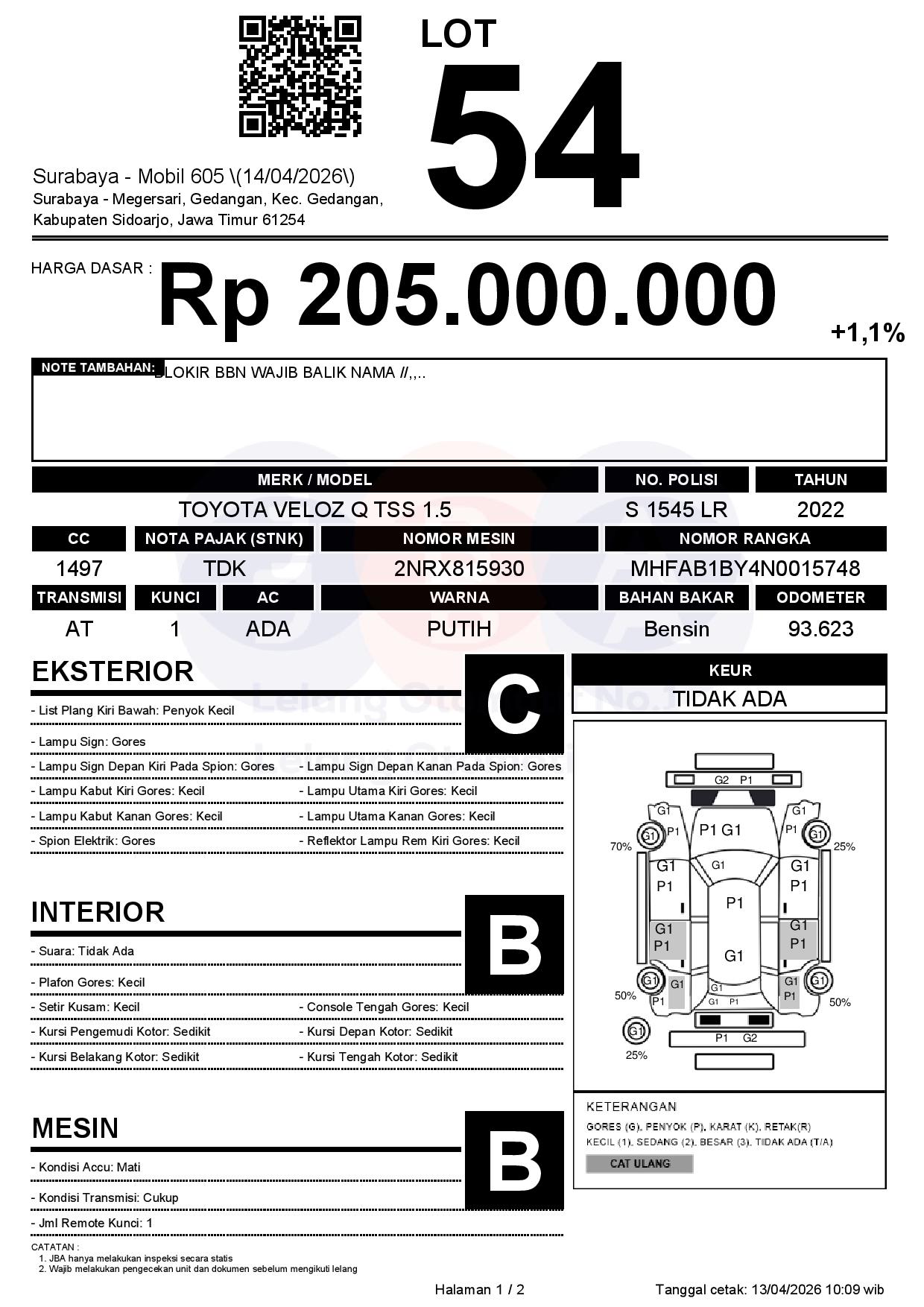 Tanggal Lelang: 14/04/2026 | 13:00 WIB