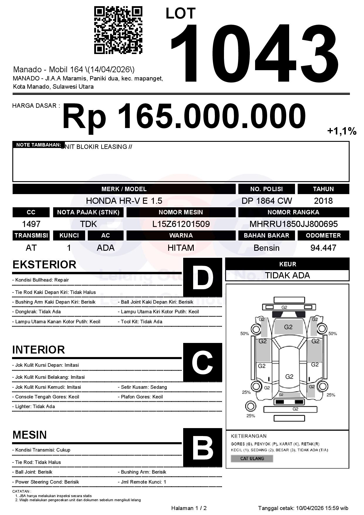 Tanggal Lelang: 14/04/2026 | 14:00 WITA