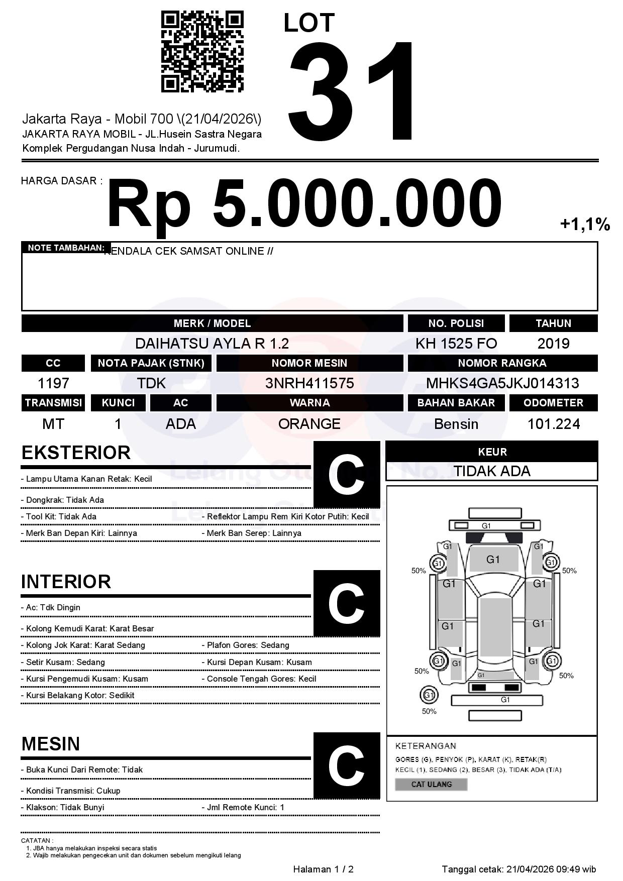 Tanggal Lelang: 21/04/2026 | 13:00 WIB