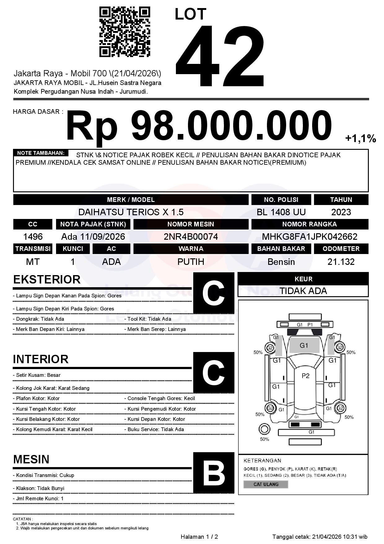 Tanggal Lelang: 21/04/2026 | 13:00 WIB