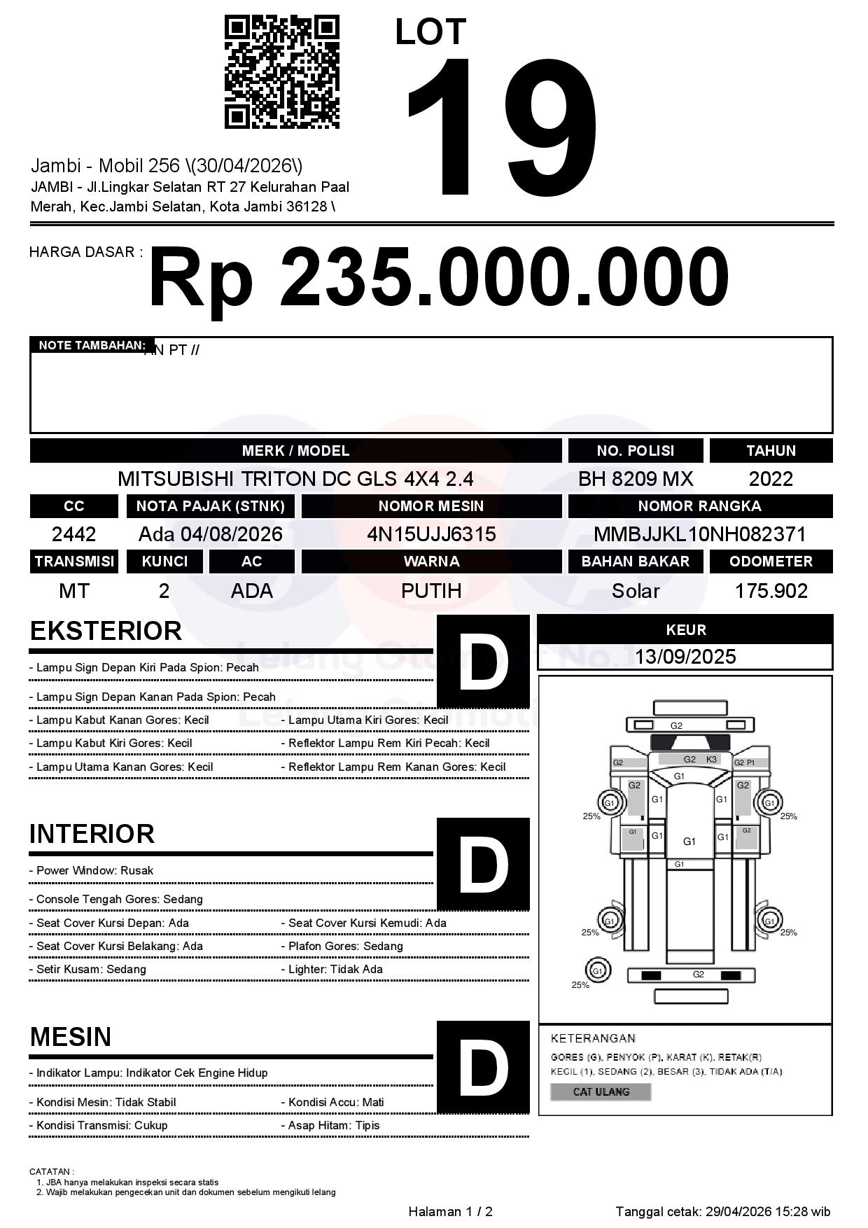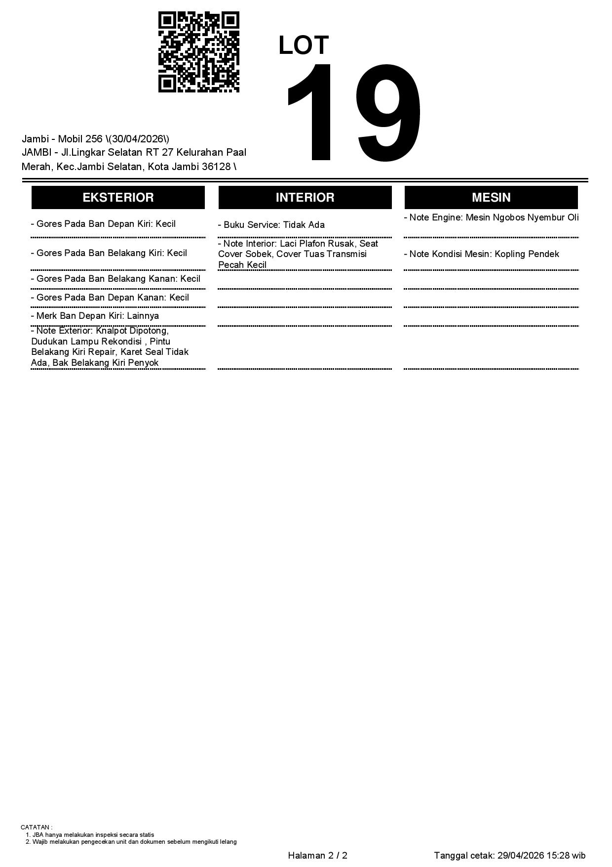 1. Peserta lelang wajib cek unit & dokumen