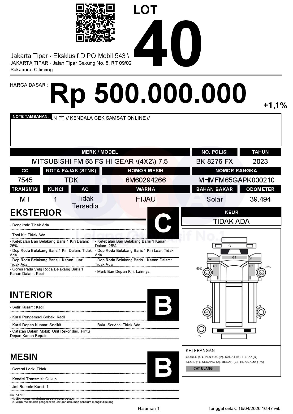 Tanggal Lelang: 17/04/2026 | 13.5:00 WIB