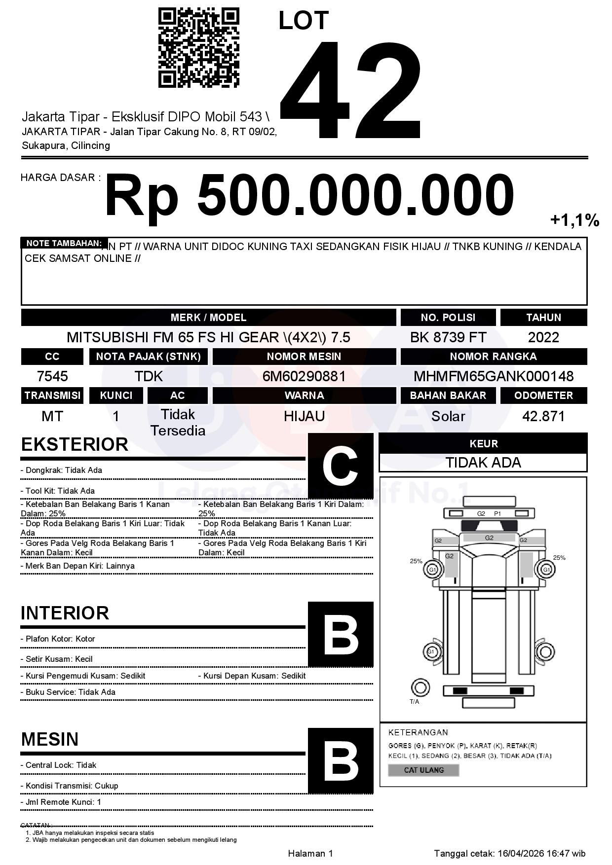 Tanggal Lelang: 17/04/2026 | 13.5:00 WIB