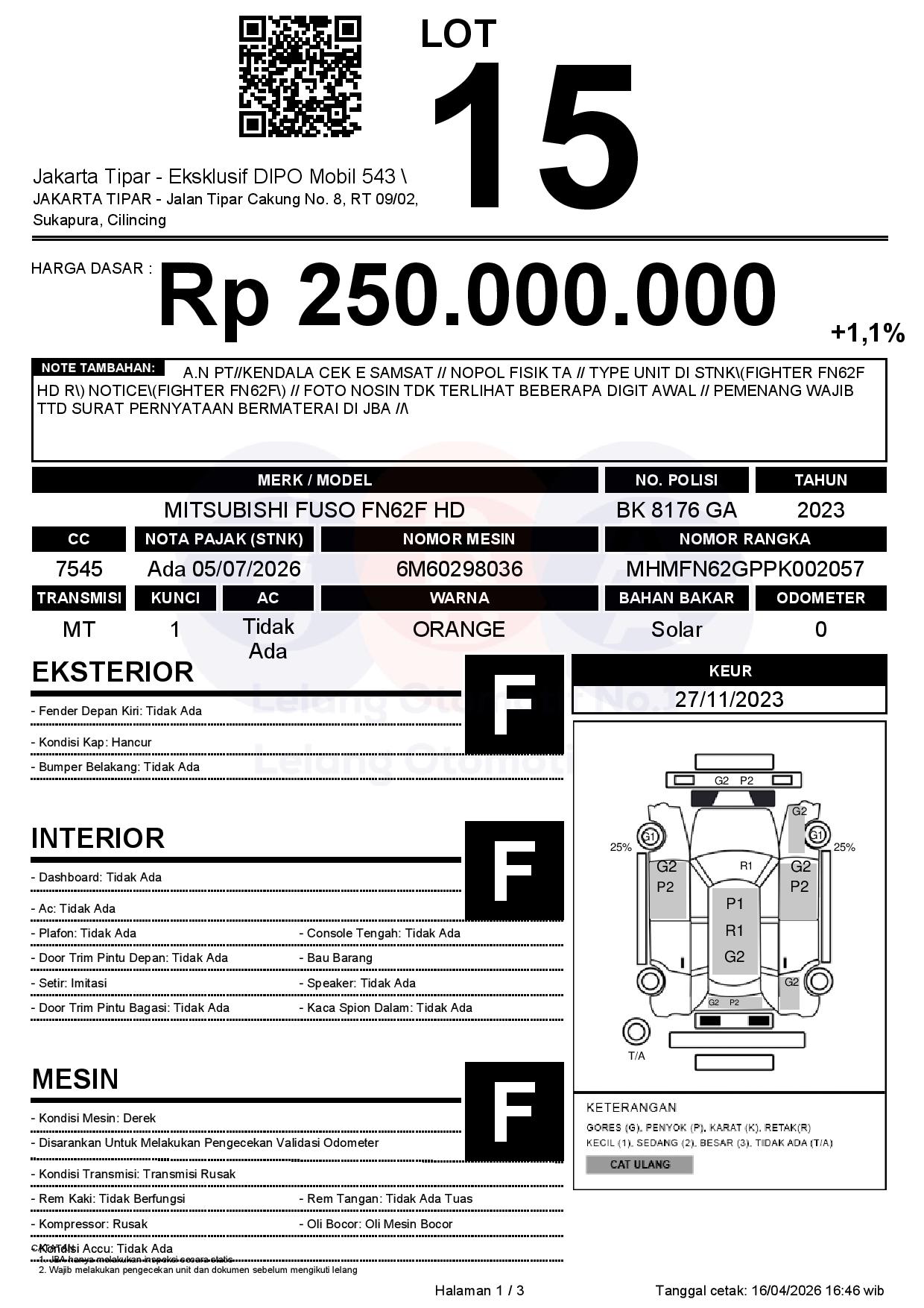 Tanggal Lelang: 17/04/2026 | 13.5:00 WIB
