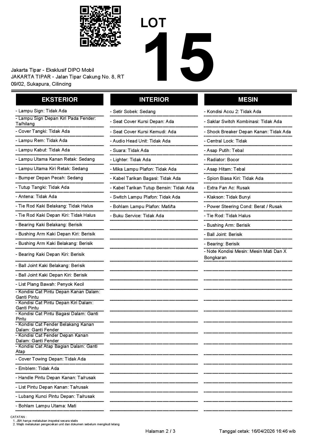 2. Peserta lelang wajib cek unit & dokumen