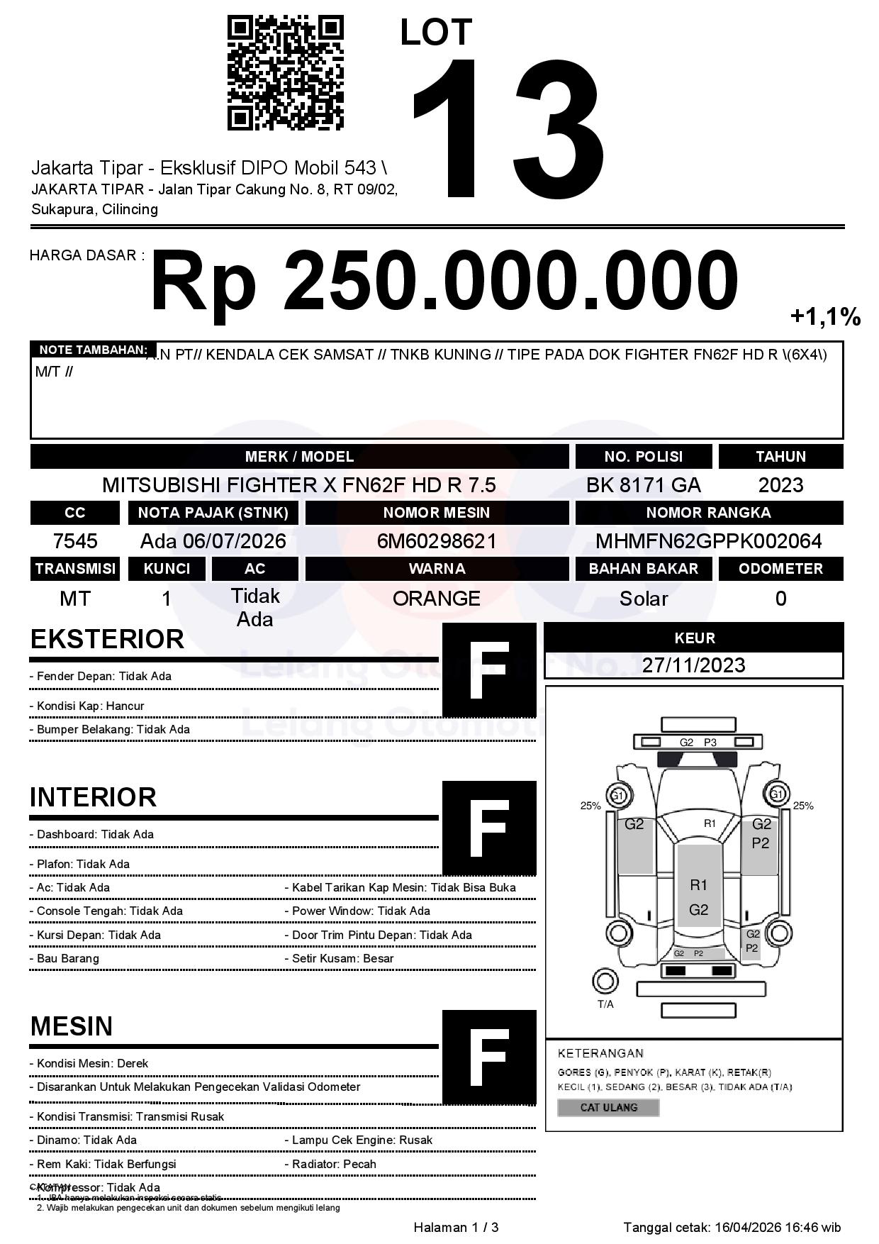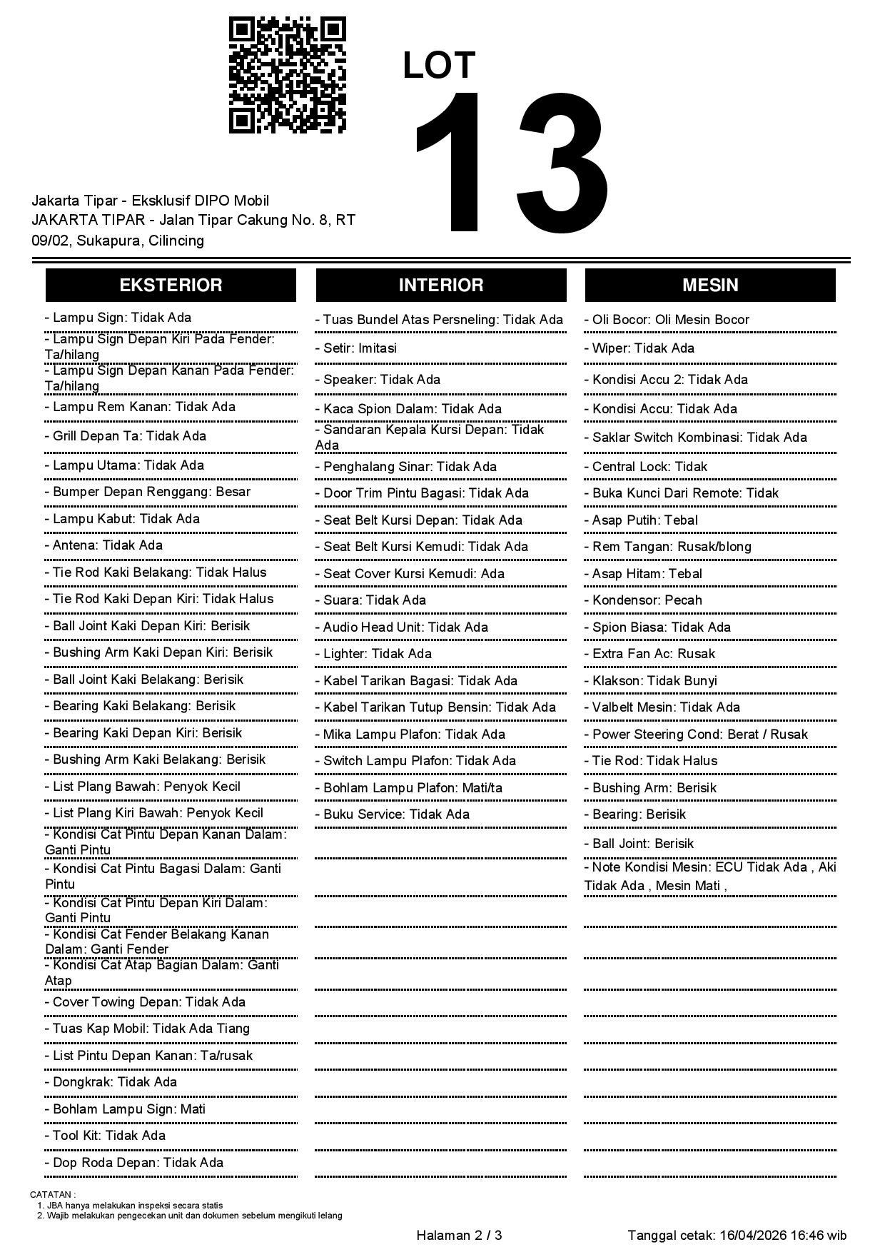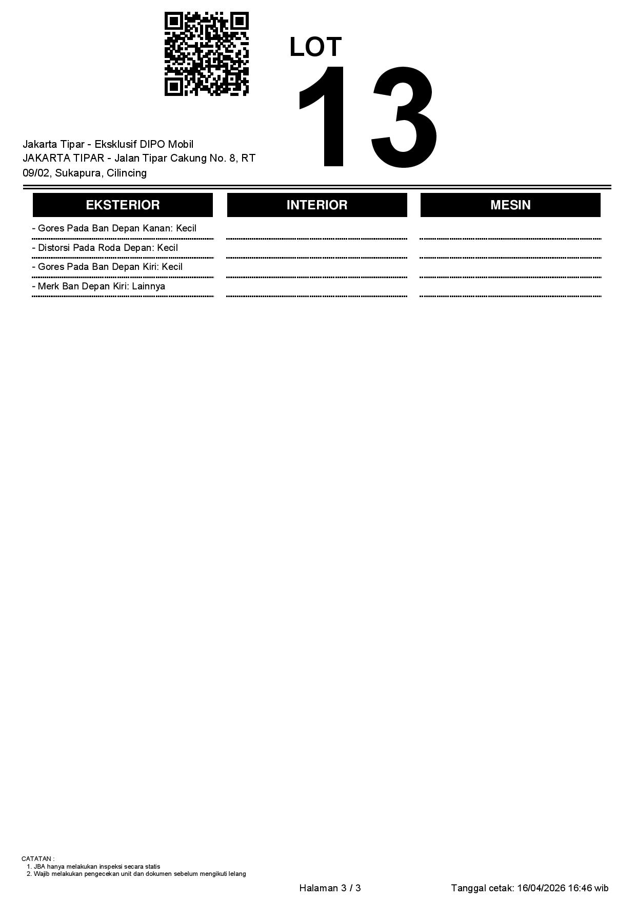 Tanggal Lelang: 17/04/2026 | 13.5:00 WIB