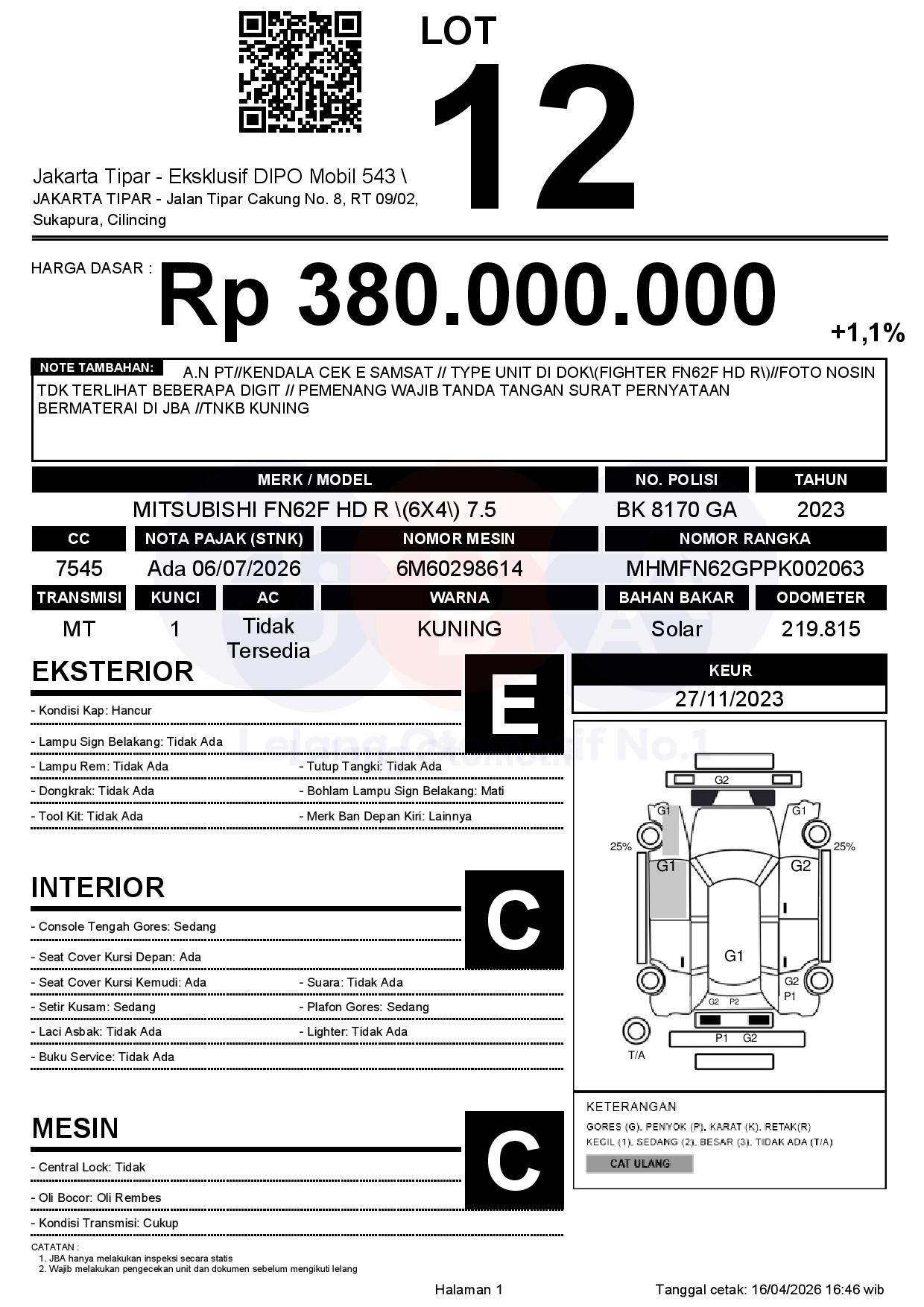 Tanggal Lelang: 17/04/2026 | 13.5:00 WIB