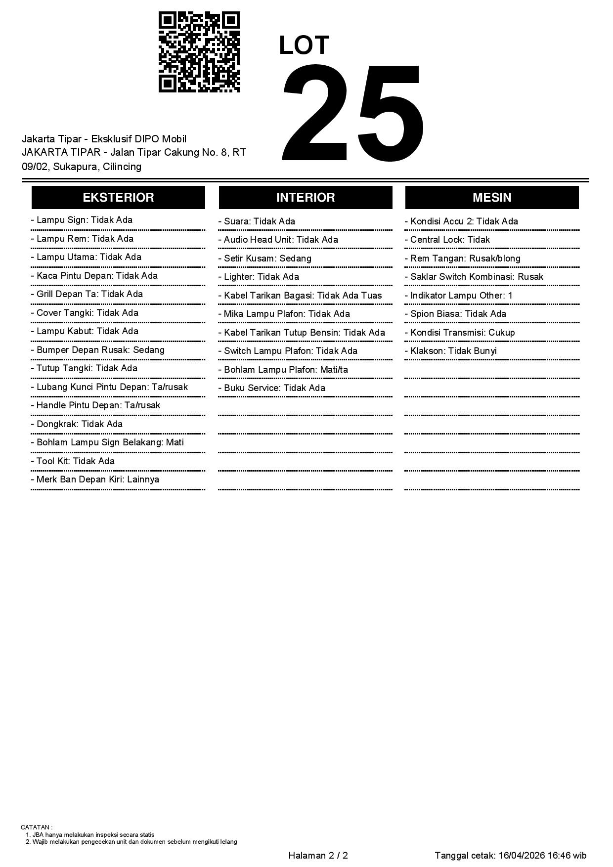 2. Peserta lelang wajib cek unit & dokumen