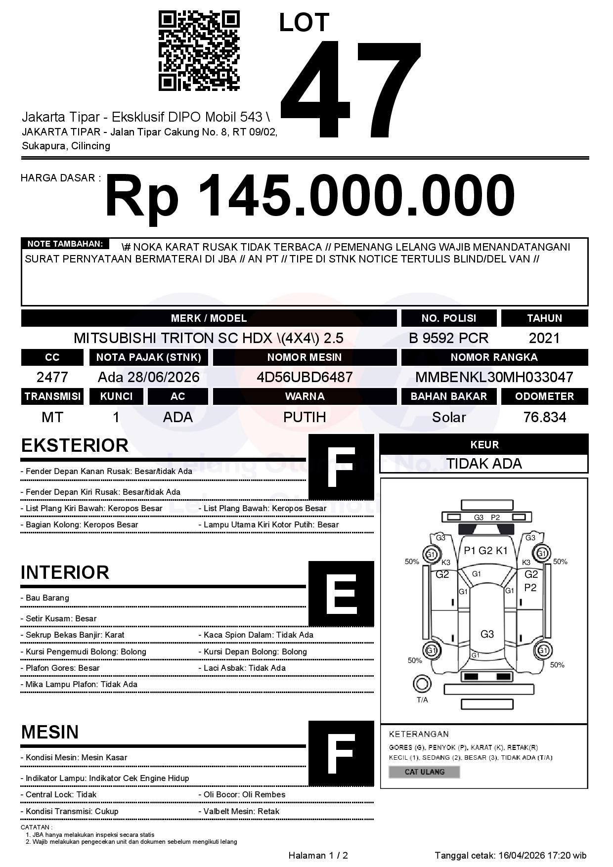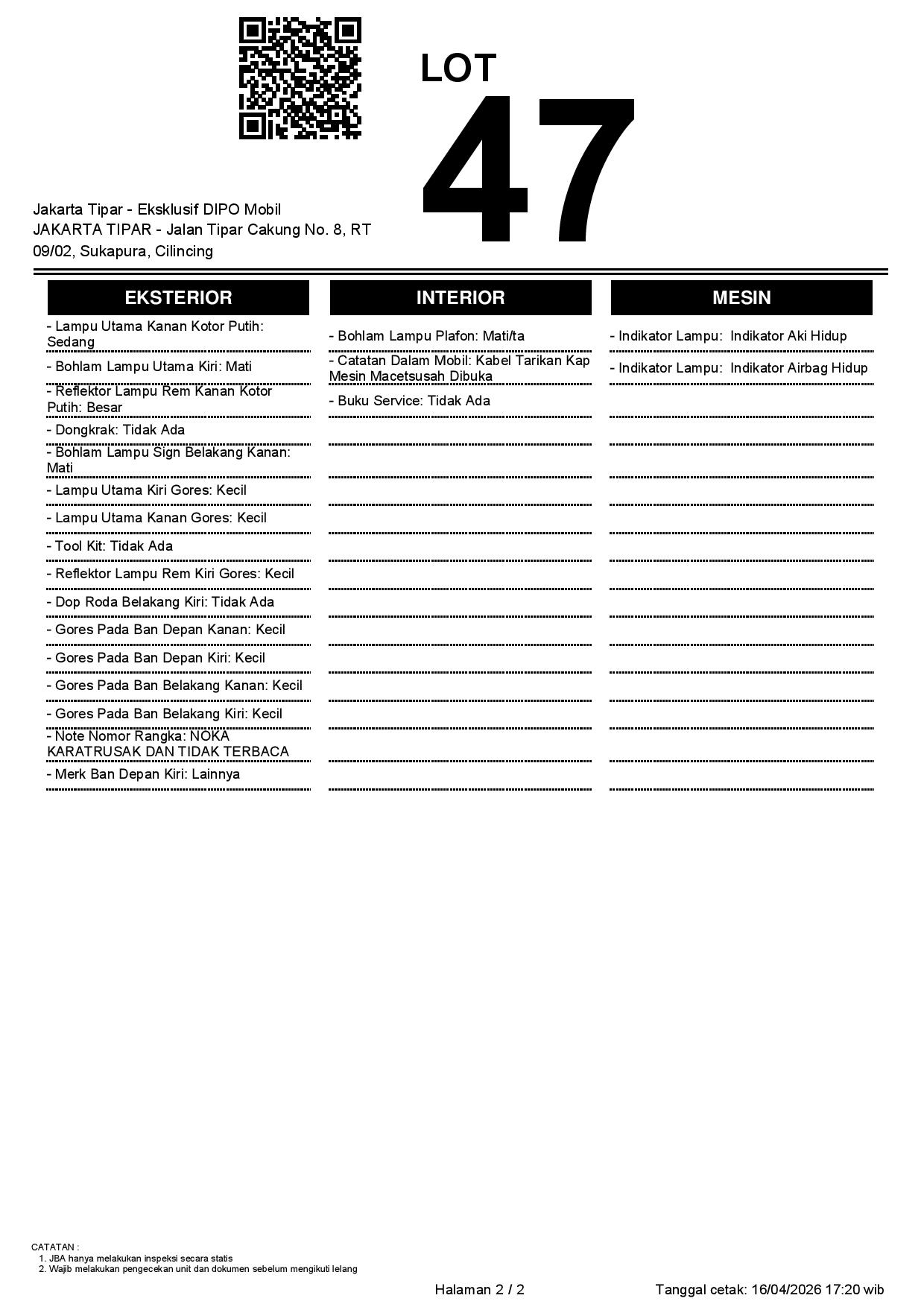 Tanggal Lelang: 17/04/2026 | 13.5:00 WIB
