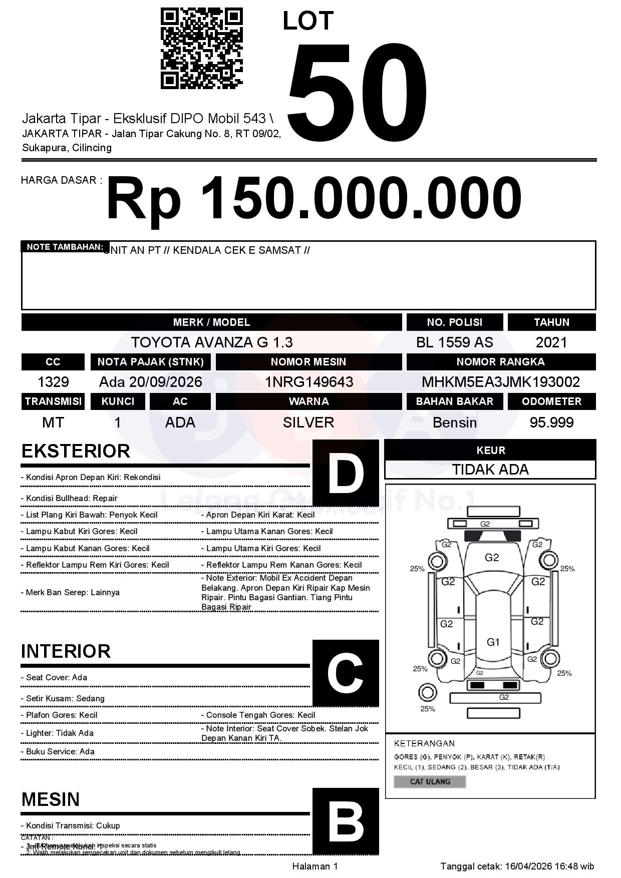 Tanggal Lelang: 17/04/2026 | 13.5:00 WIB
