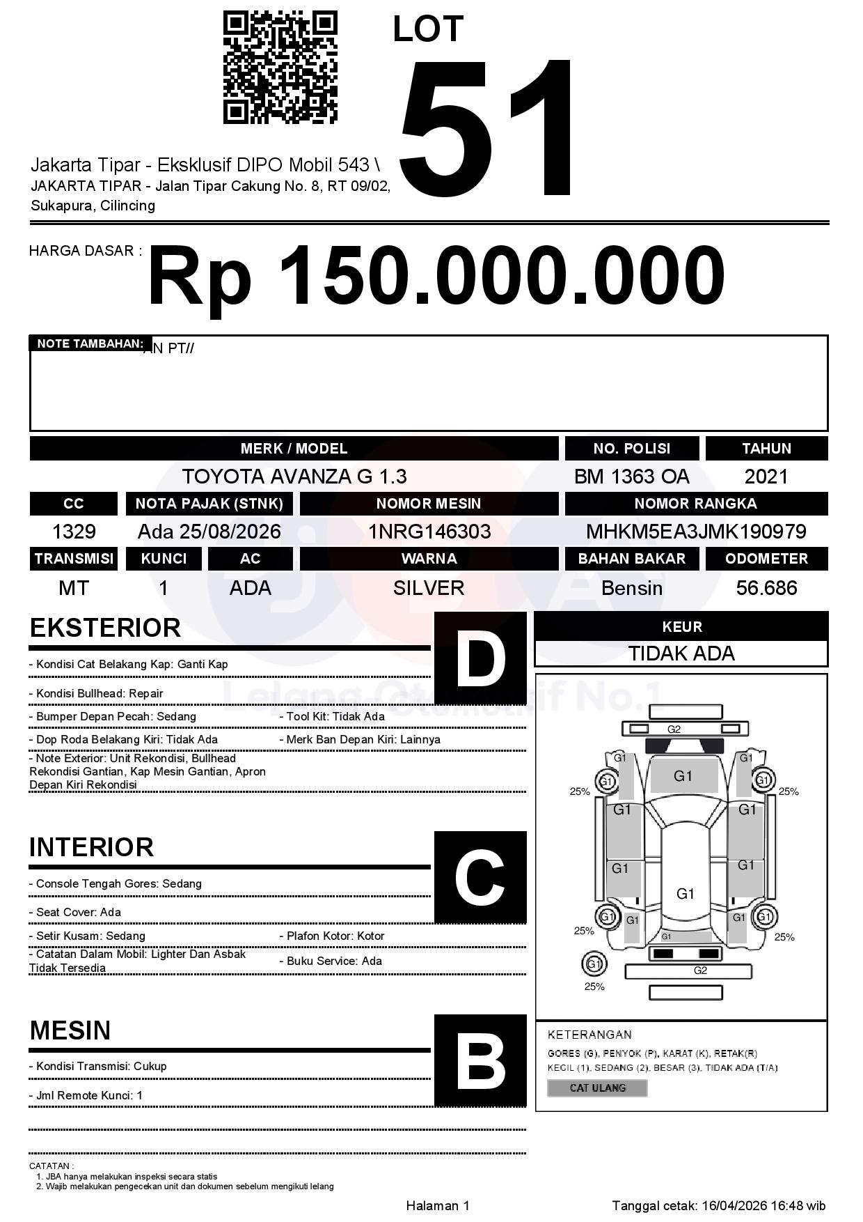 Tanggal Lelang: 17/04/2026 | 13.5:00 WIB