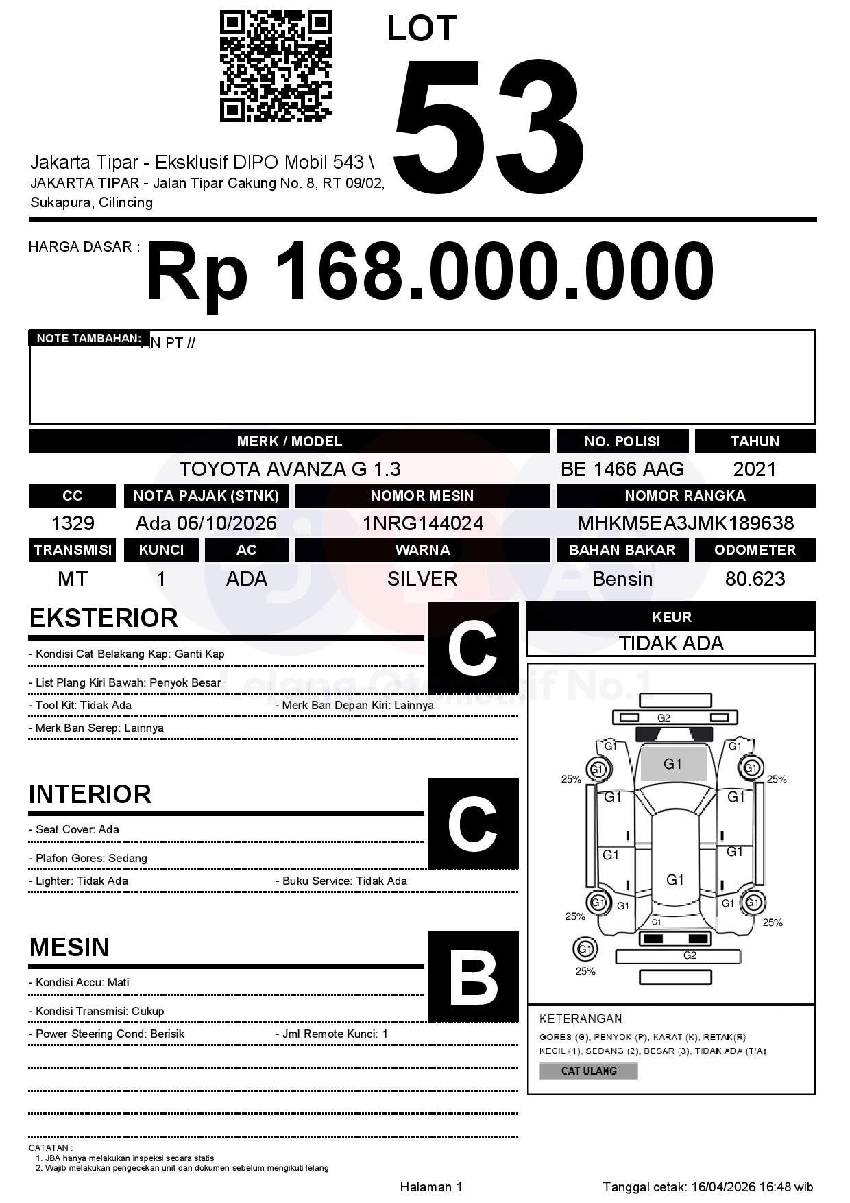 Tanggal Lelang: 17/04/2026 | 13.5:00 WIB