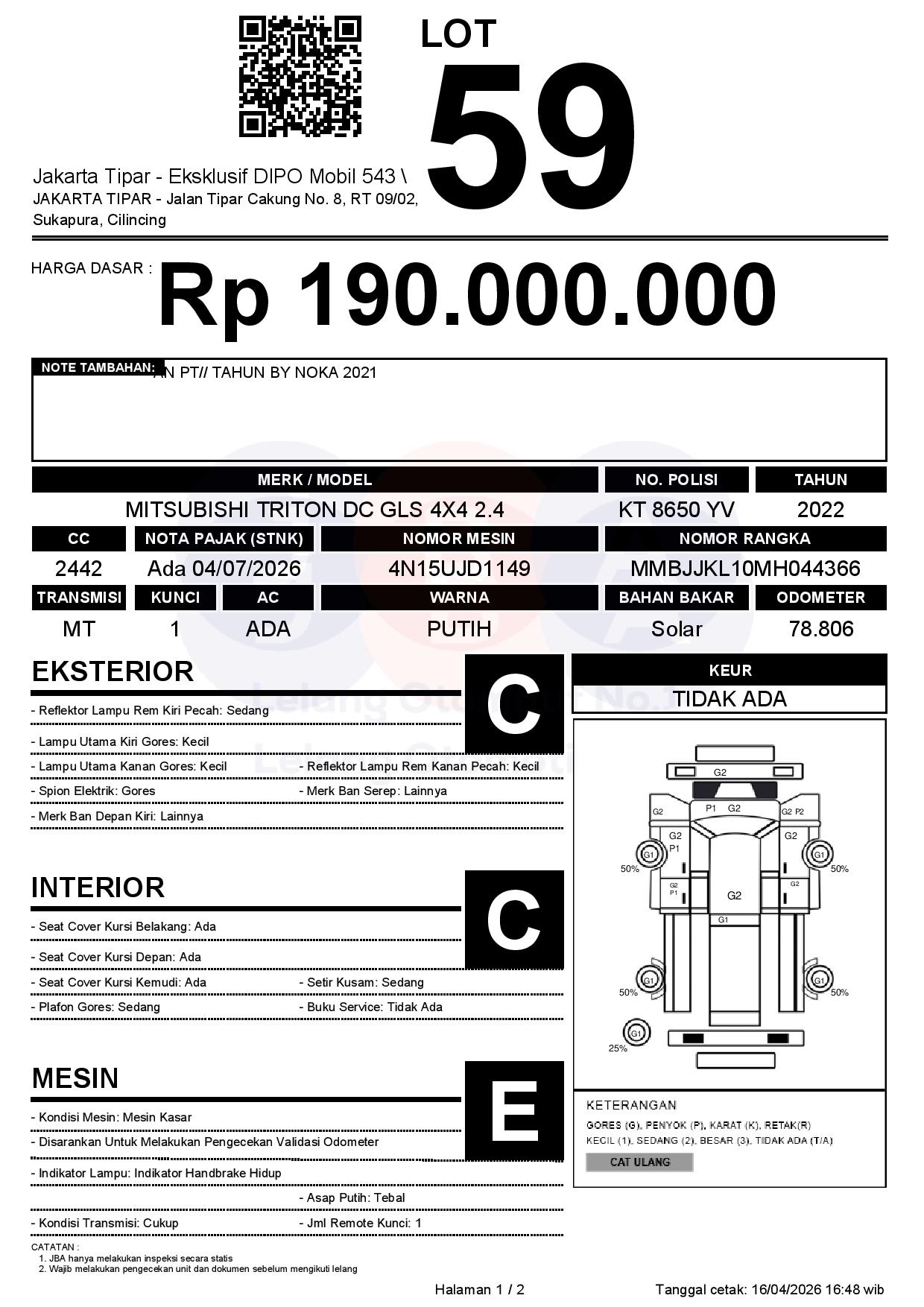 Tanggal Lelang: 17/04/2026 | 13.5:00 WIB