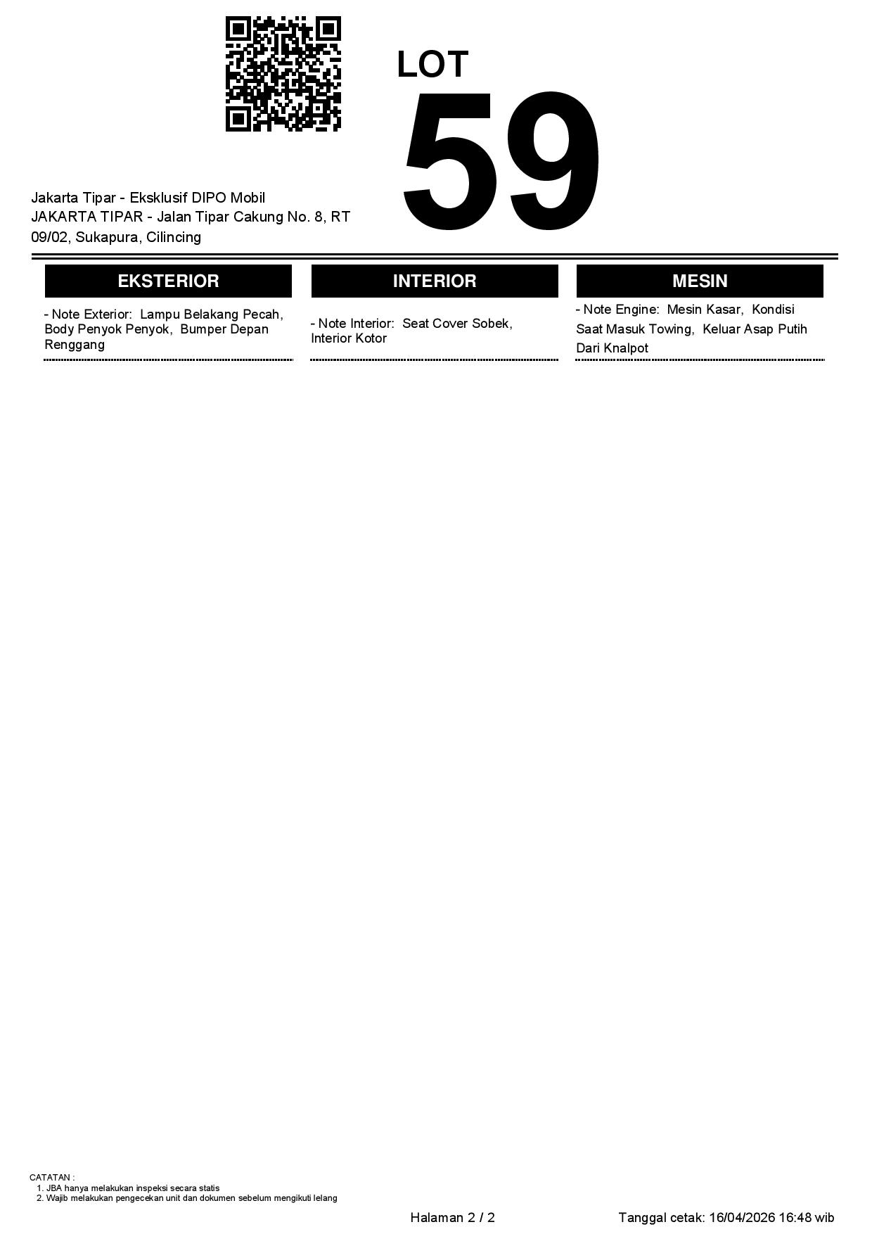 1. Peserta lelang wajib cek unit & dokumen