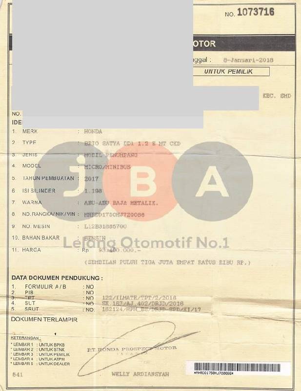 DISC ADMIN FEE RP 3JT // UNIT BERADA DI POOL SELLER // PEMENANG WAJIB KONFIRMASI KE JBA SETELAH PELUNASAN // PENGAMBILAN UNIT H+2 SETELAH PELUNASAN // UNIT TDK DI CHECKLIST // PEMENANG LELANG WAJIB MENANDATANGANI SURAT PERNYATAAN BERMATERAI DI JBA // EX BBN //