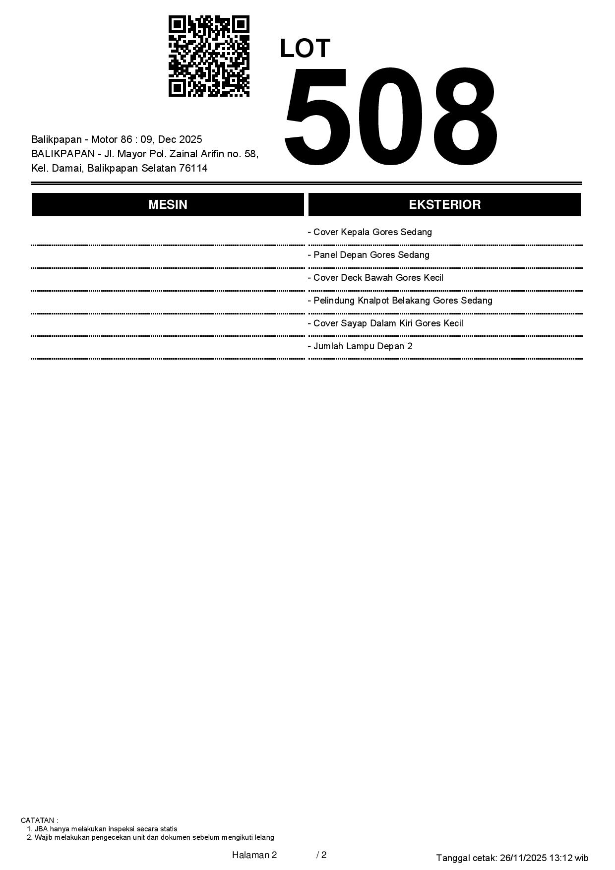 2. Peserta lelang wajib cek unit & dokumen