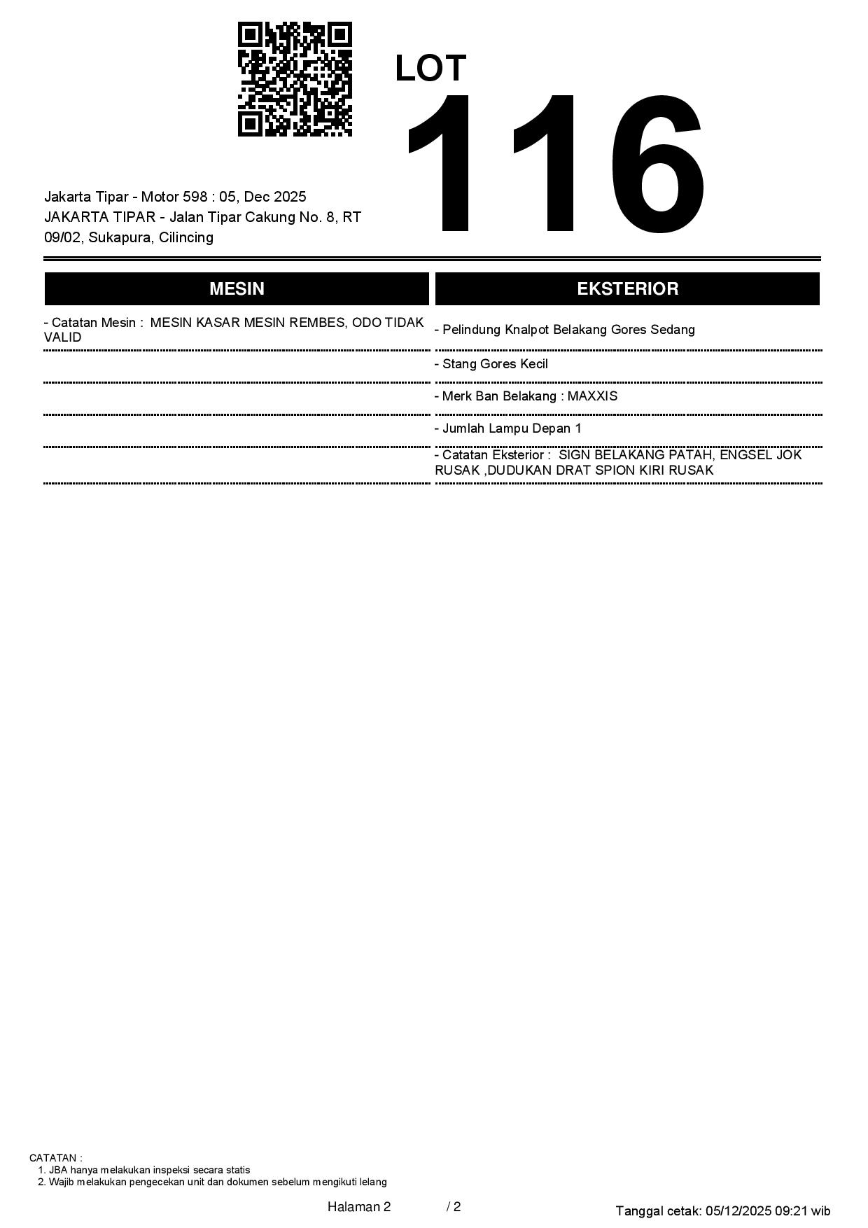 Tanggal Lelang: 05/12/2025 13.5:00 | WIB