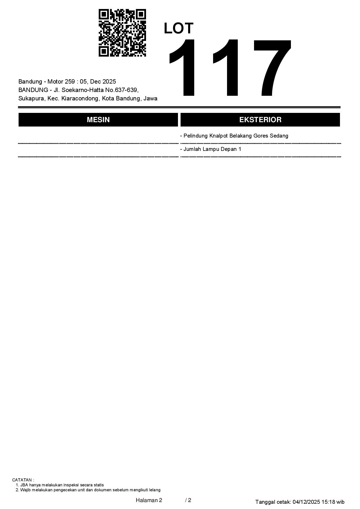 Tanggal Lelang: 05/12/2025 13.5:00 | WIB